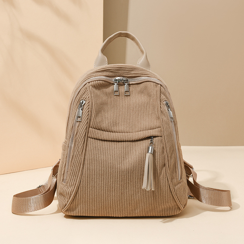 新款双肩包货源大容量灯芯绒女士跨境简约复古休闲旅行背包多功能