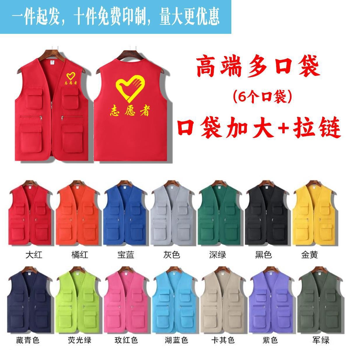 志愿者马甲印字定制logo义工宣传公益活动红色背心广告衫工作服