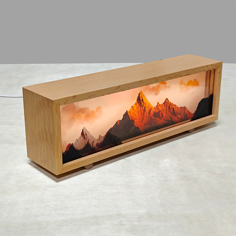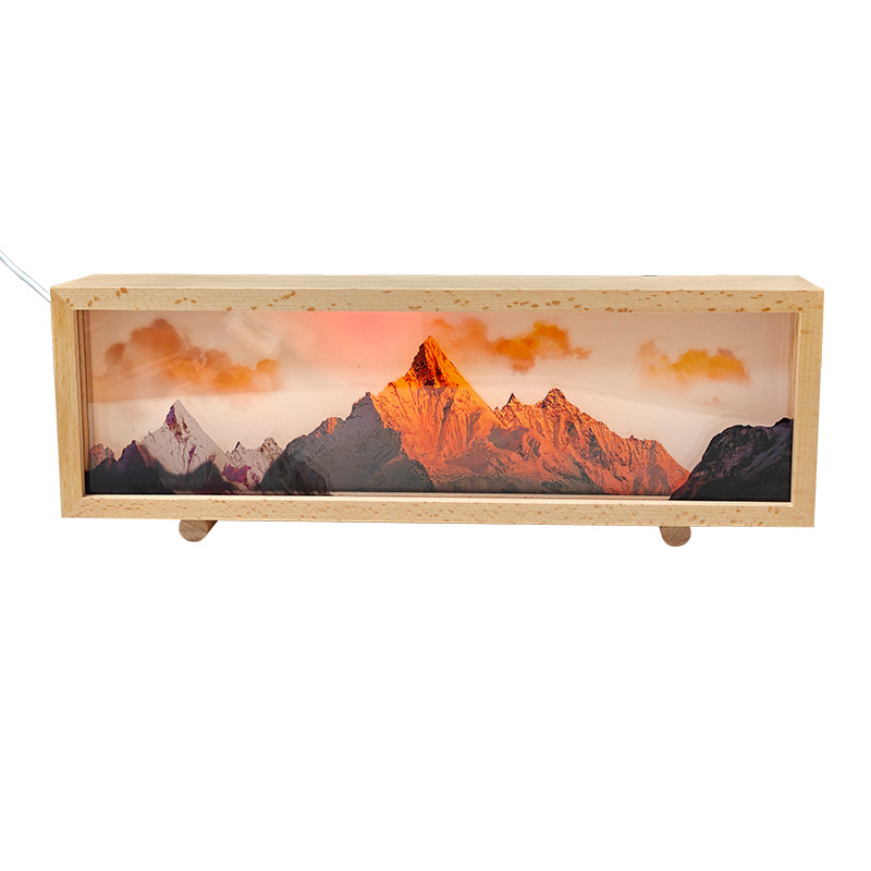 日照金山渐变led灯轻触感应玄关卧室床头灯群山微景观实木小夜灯
