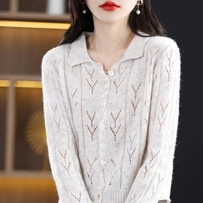 Polo领镂空外搭开衫2025新款毛衫女士时尚气质百搭宽松显瘦针织衫