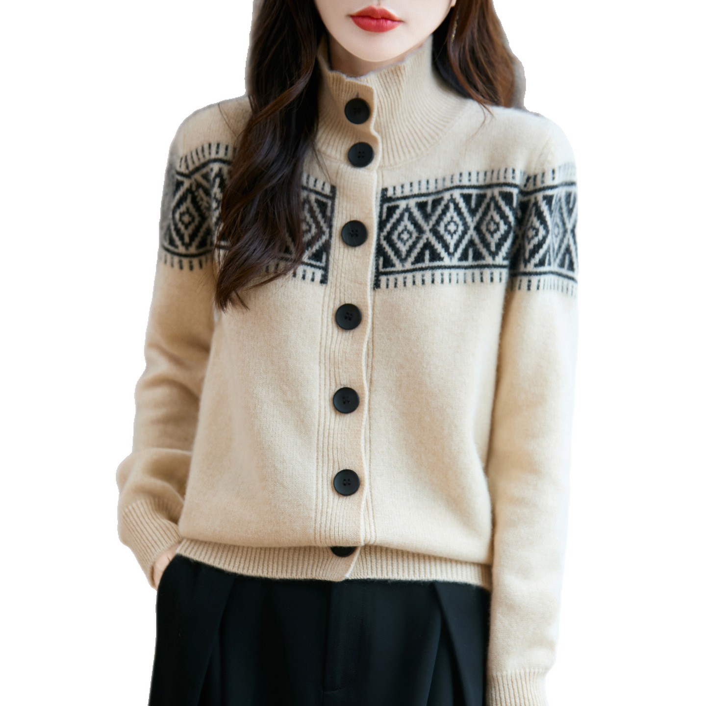 2025秋冬新款减龄时尚好看女高领撞色针织衫开衫毛衣高端时髦拼色