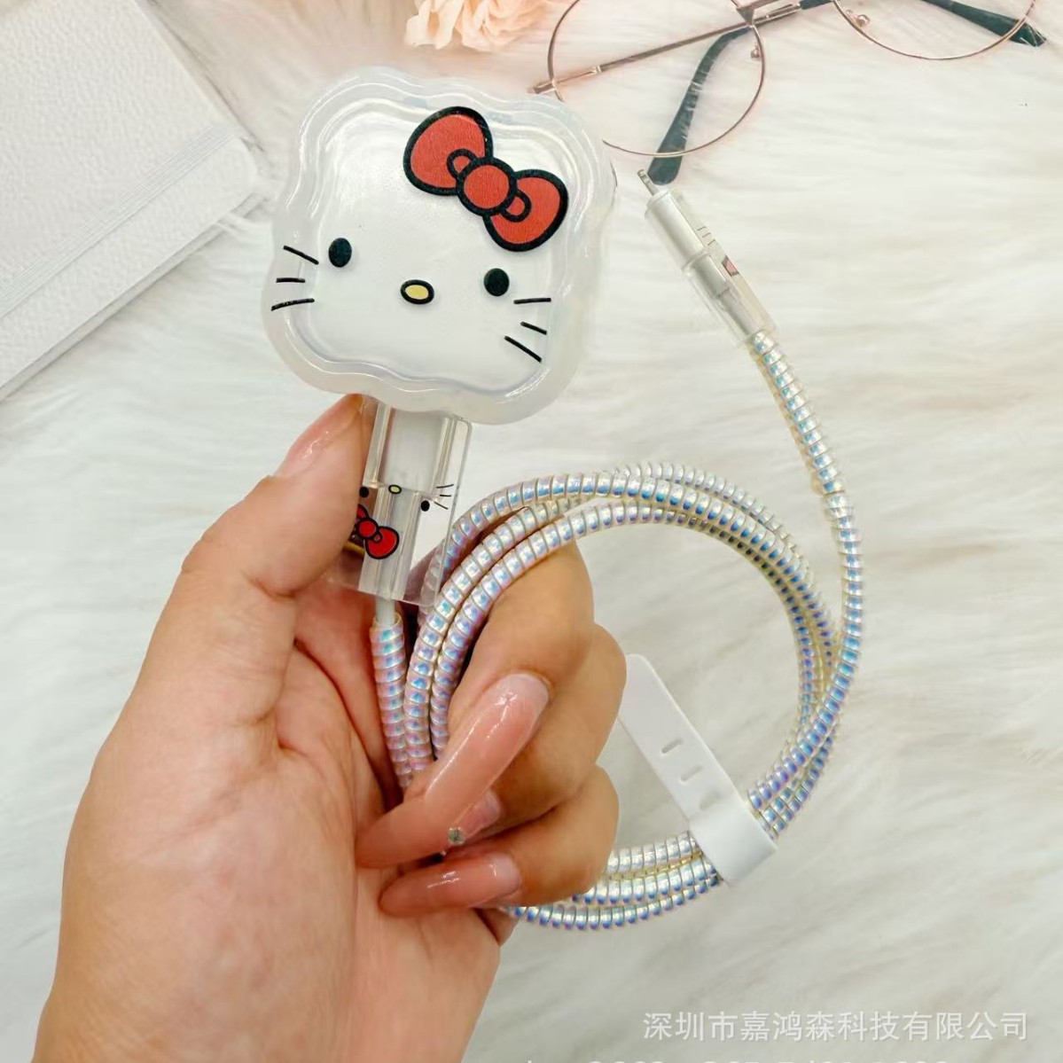 可爱KT猫充电器保护套适用苹果40w快充充电头数据线咬线器