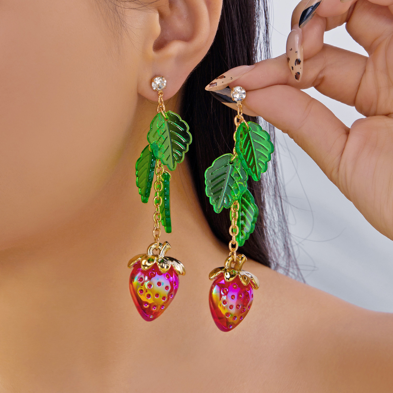 | 颜色 | #仿珍珠草莓耳钉-粉色 | 颜色 | #叶子草莓-红色 |