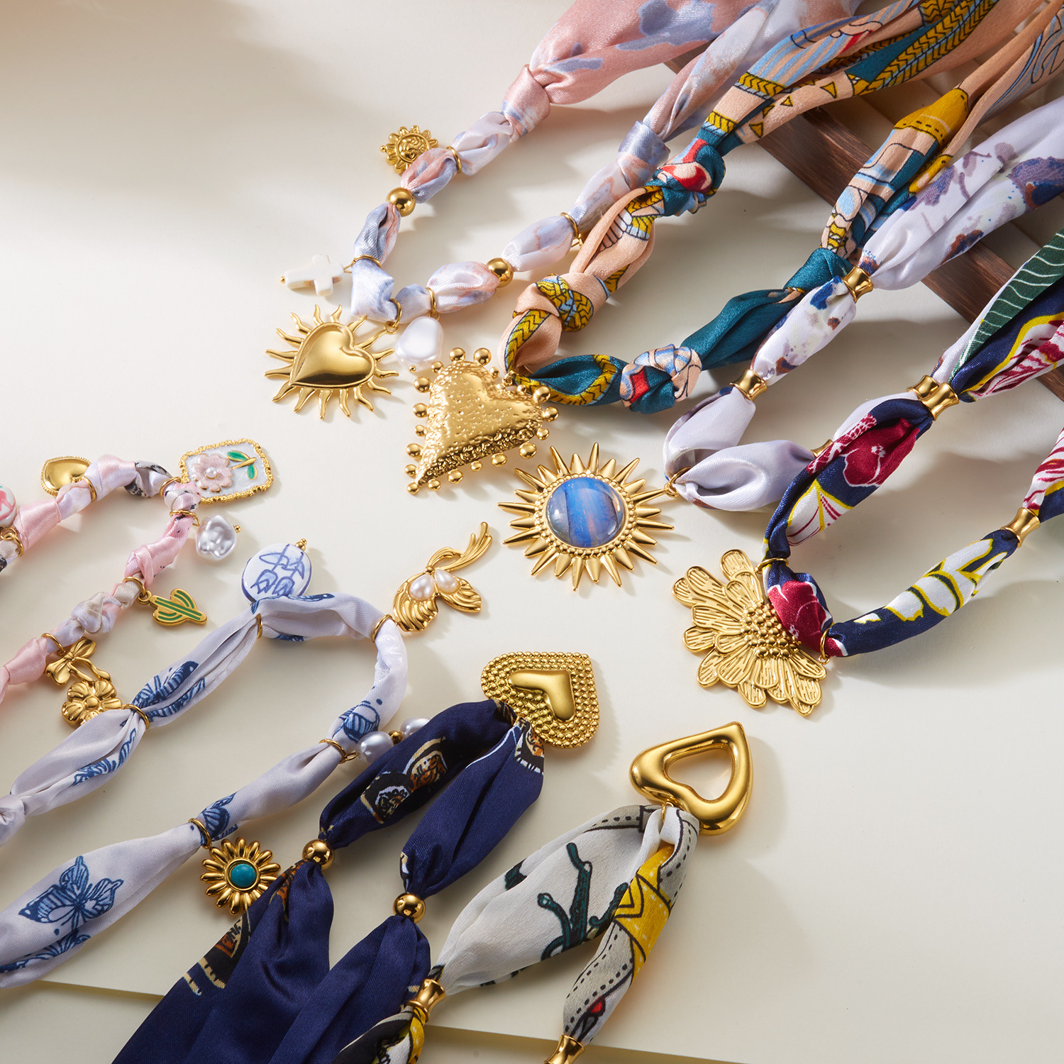 跨境电商亚马逊热销项链轻奢高级感丝巾爱心彩色太阳花项饰品批发