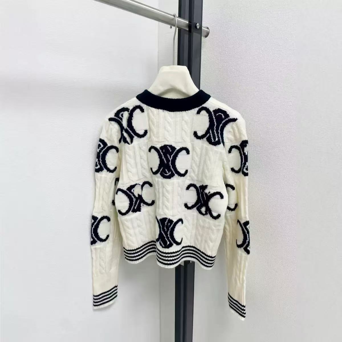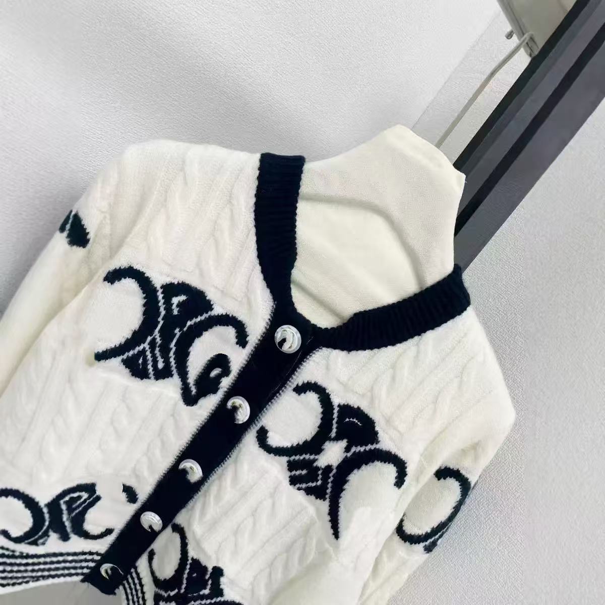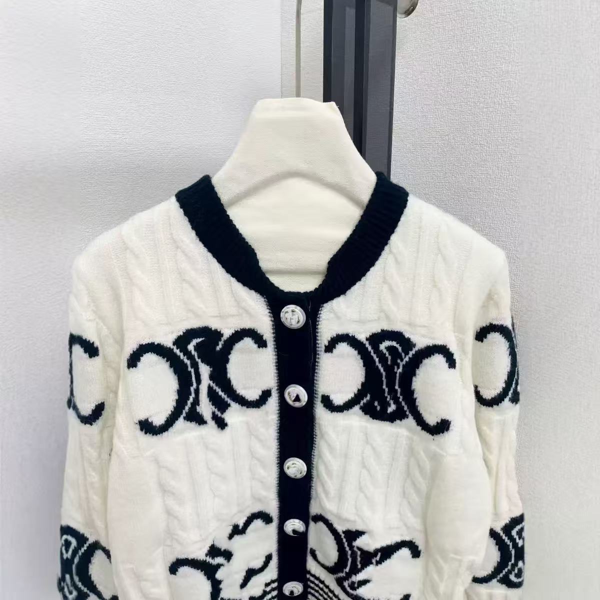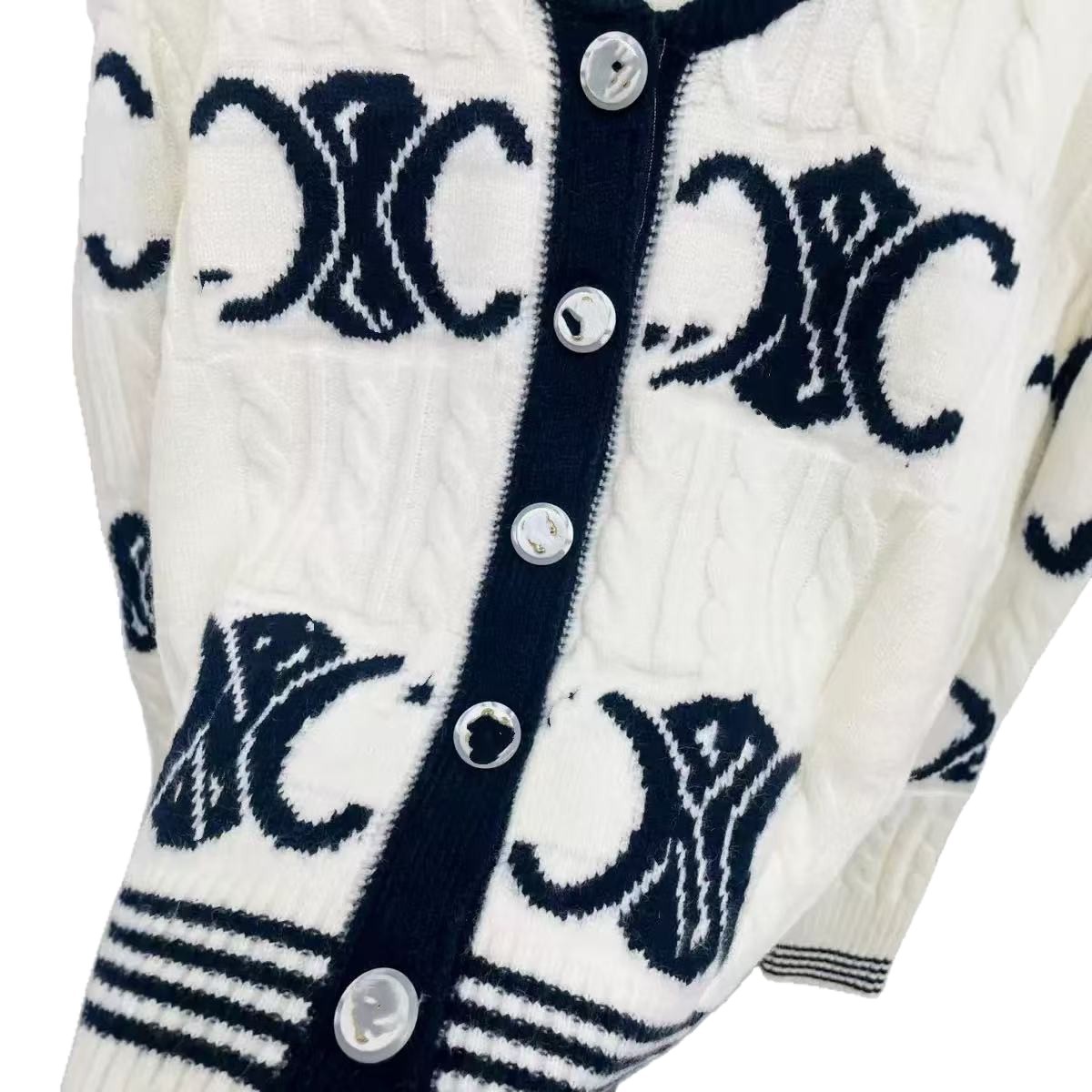 深圳南油CE家25年秋冬新款logo提花撞色针织开衫毛衣外套女