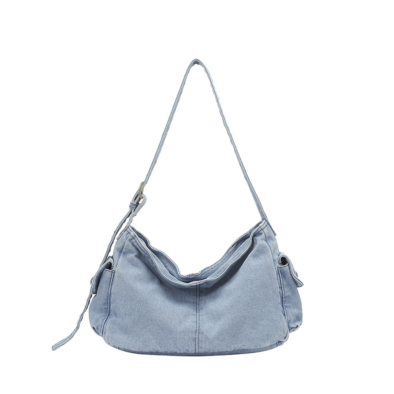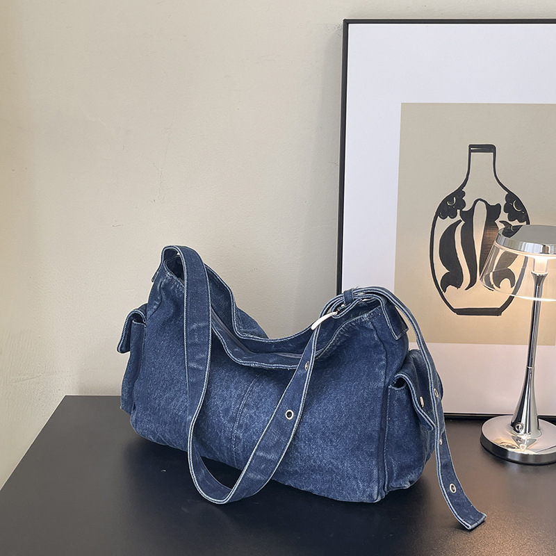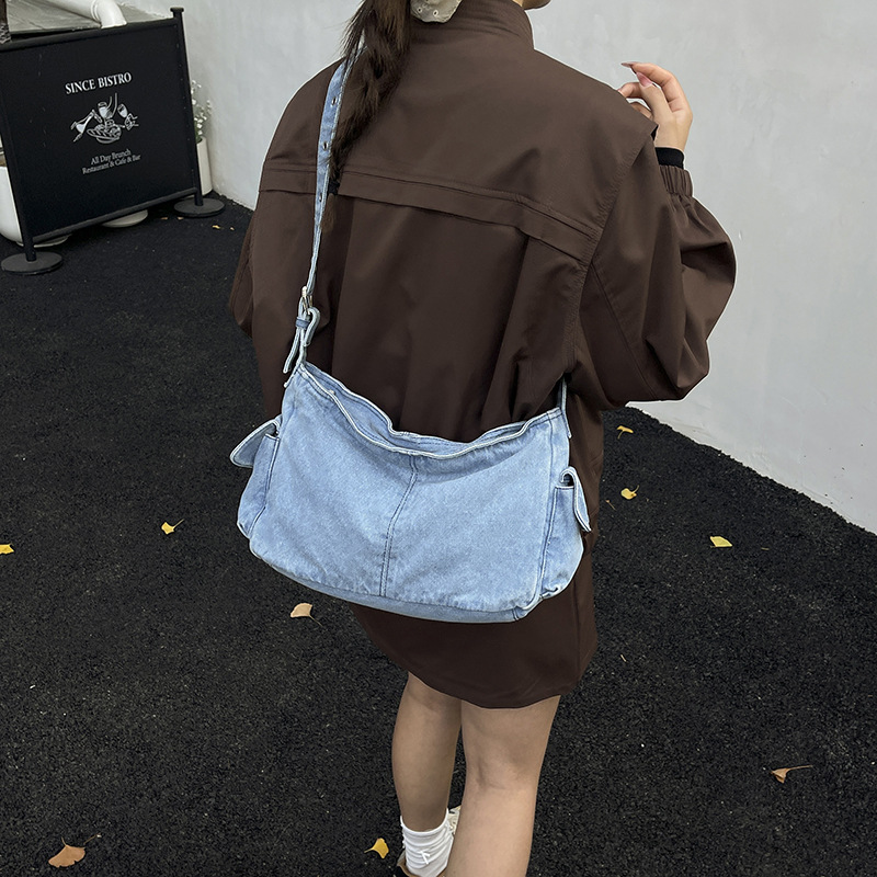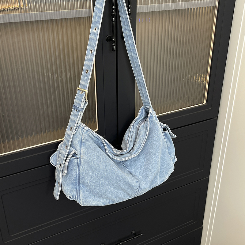 牛仔布单肩斜挎包大容量百搭简约韩版休闲托特包复古通勤帆布包女