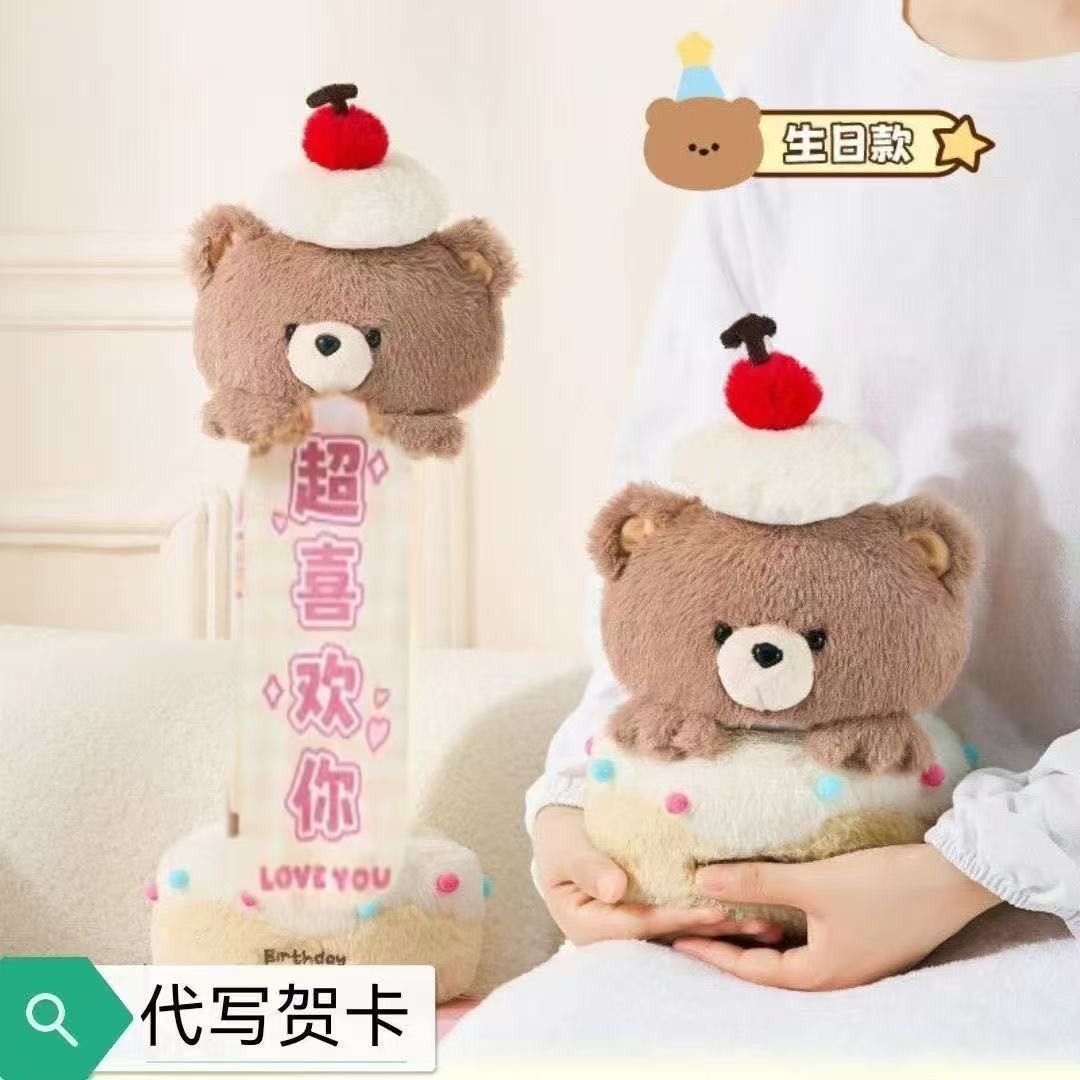 创意小熊生日蛋糕造型毛绒玩具可抽拉打开公仔玩偶