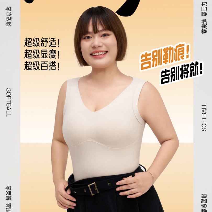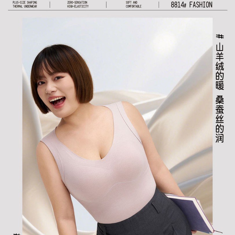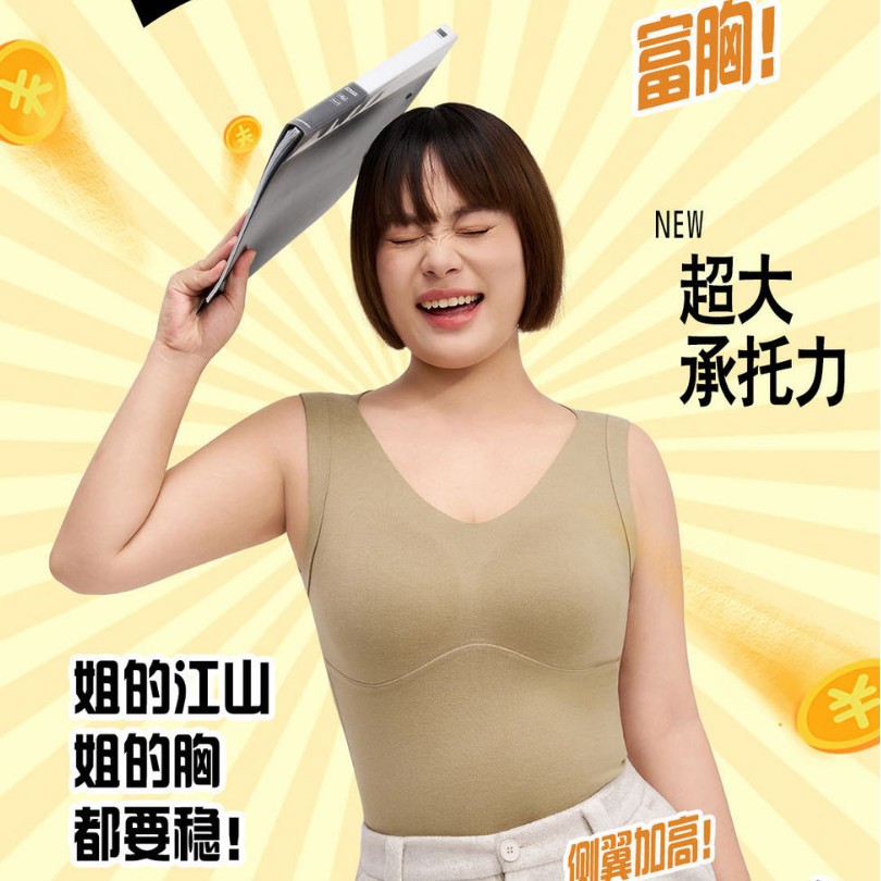 新款微胖大码臻暖背心美背内衣自带胸垫打底内搭免穿文胸一体上衣