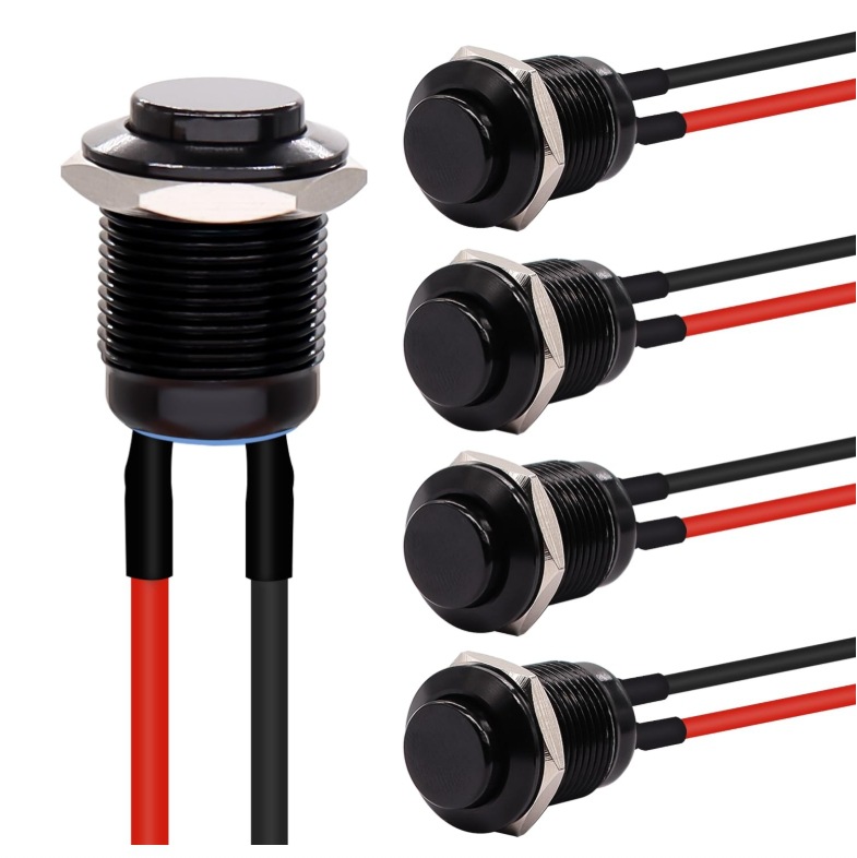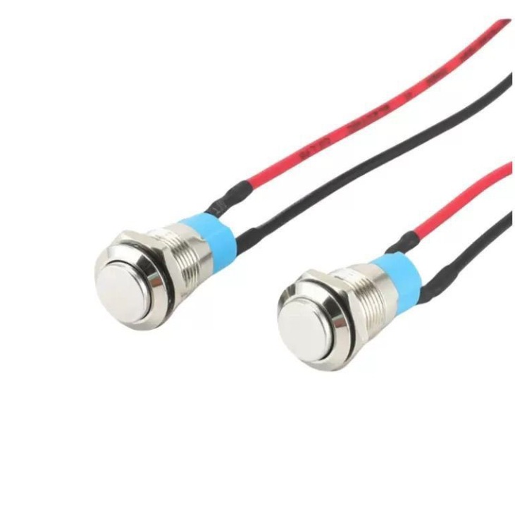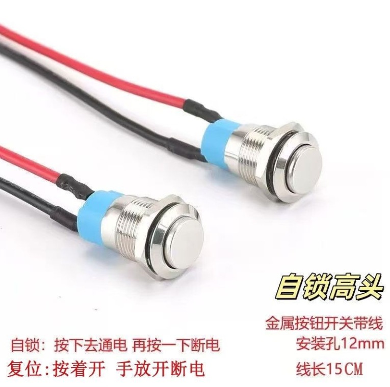 带线12MM小型金属按钮开关自复位/自锁 焊接插脚防水启动开关