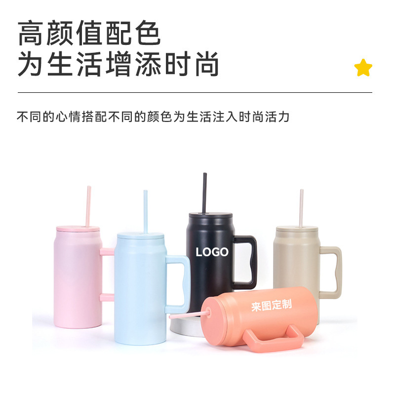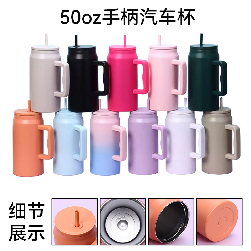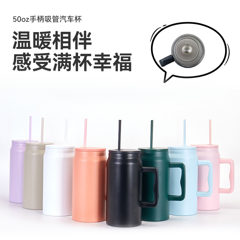 跨境50oz巨无霸手柄汽车杯双层真空不锈钢保温杯大容量吸管冰霸杯