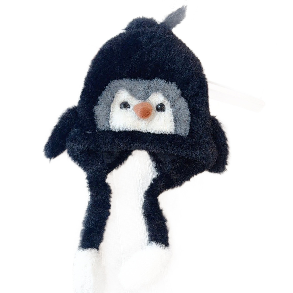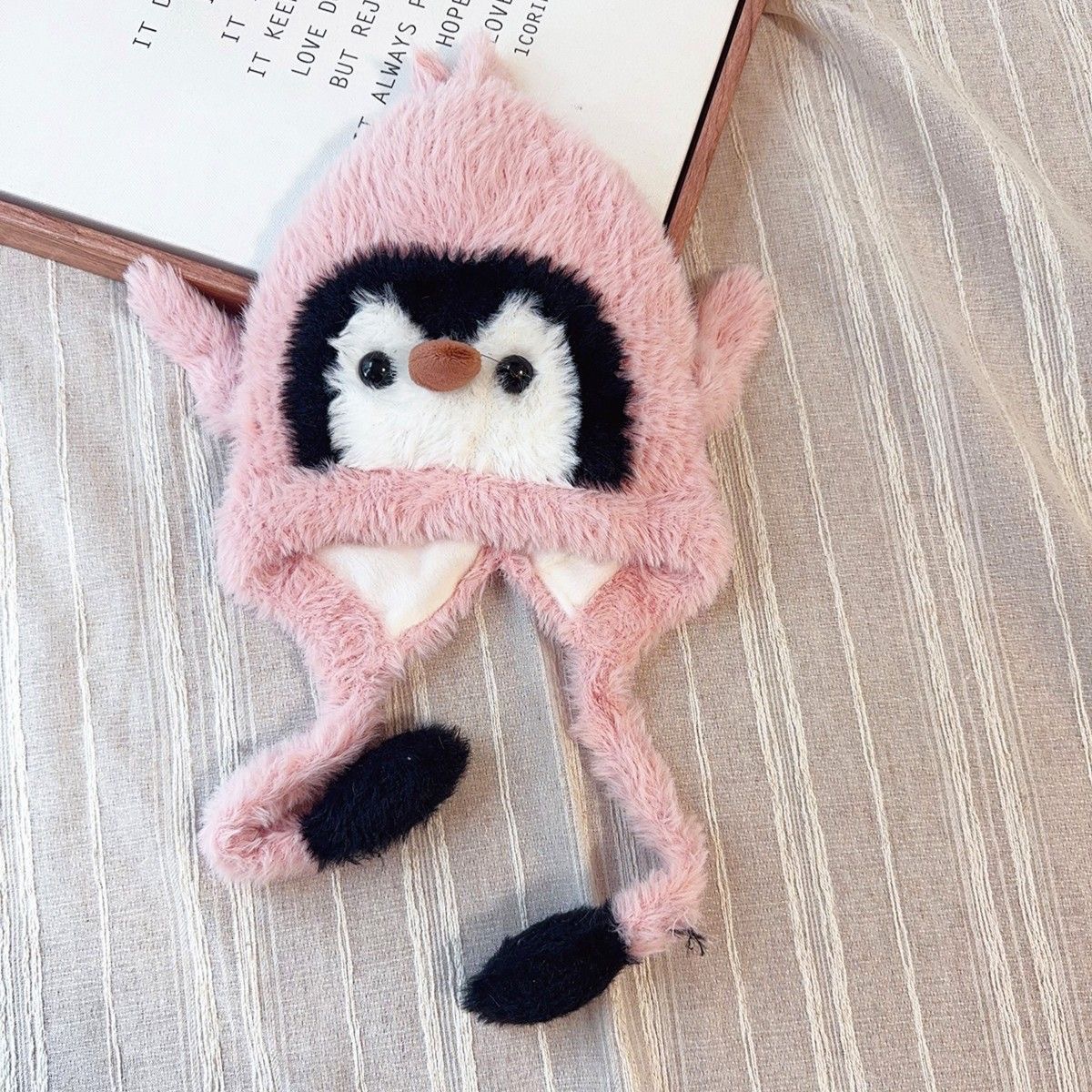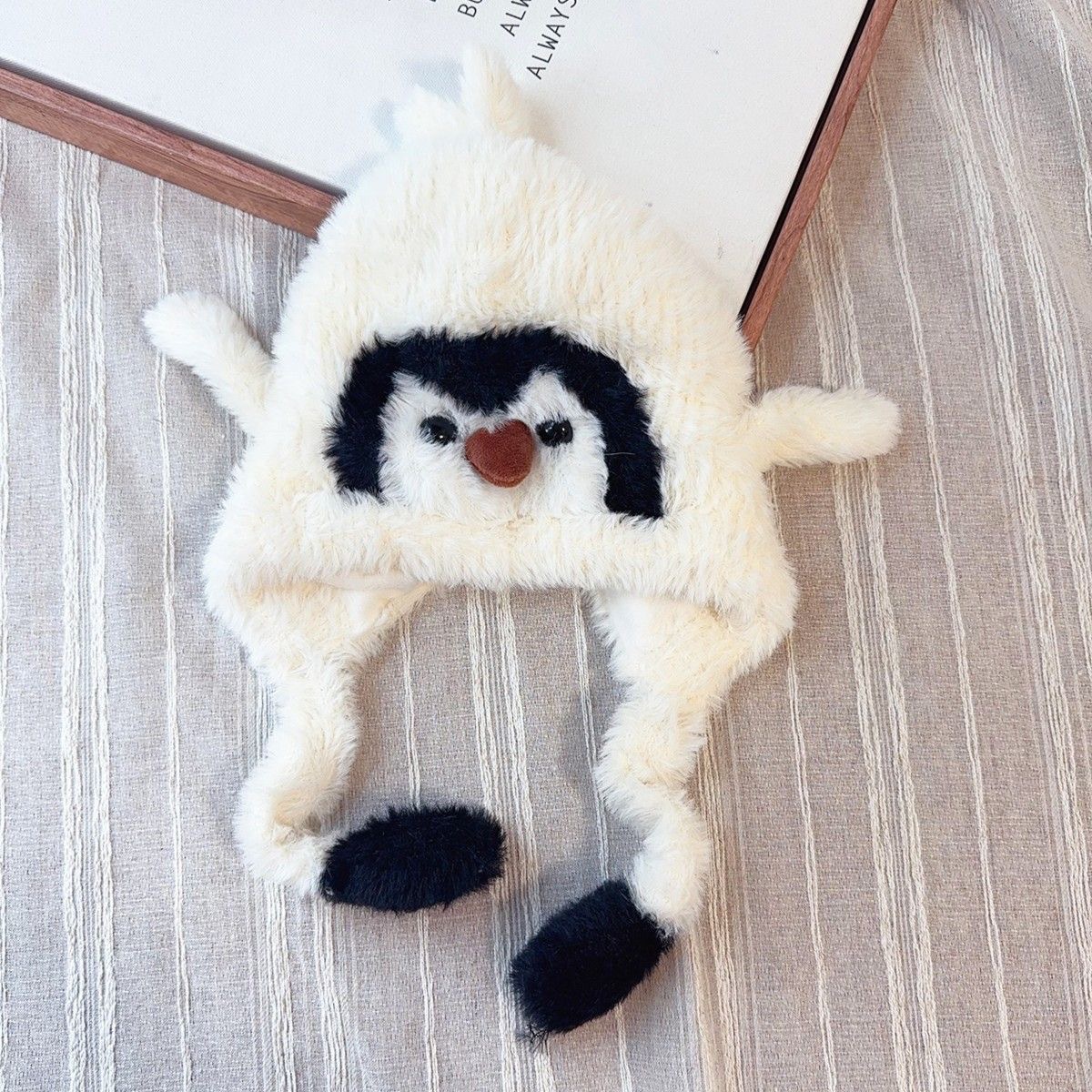 亲子款企鹅毛绒帽男女童秋冬季护耳帽滑雪户外帽子宝宝萌趣针织帽