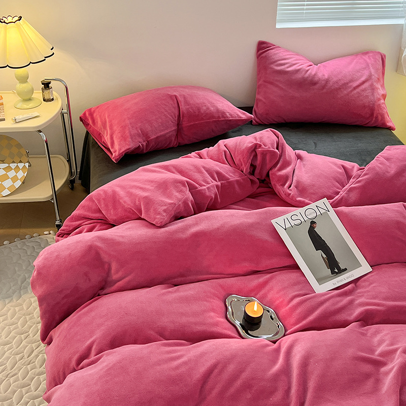 卡通牛奶绒四件套冬季加厚保暖双面绒床单被套可爱学生宿舍三件套