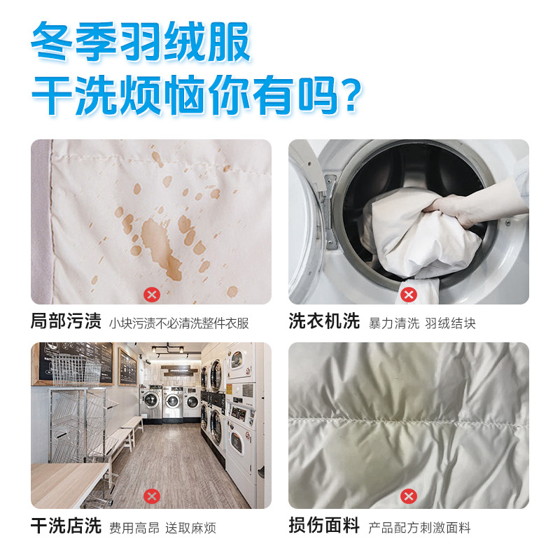 羽绒服干洗剂免洗泡沫去污渍去油专用白色清洗剂清洁衣物蓬松剂