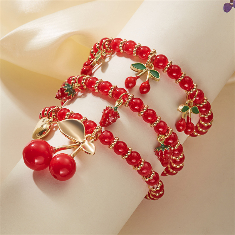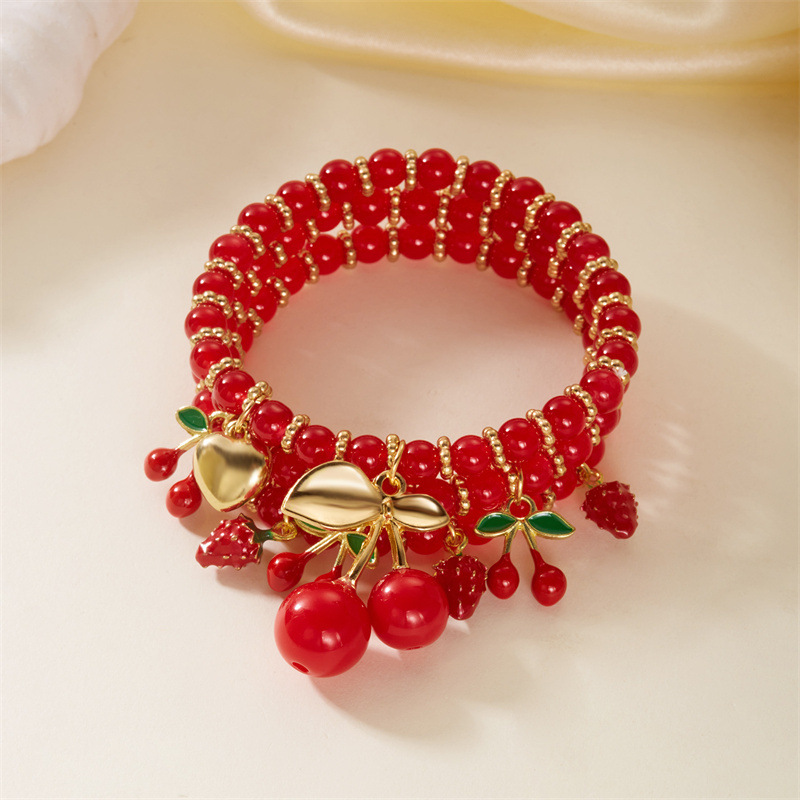 欧美外贸饰品水果水晶手串跨境新款百搭樱桃爱心吊坠多层叠戴手链