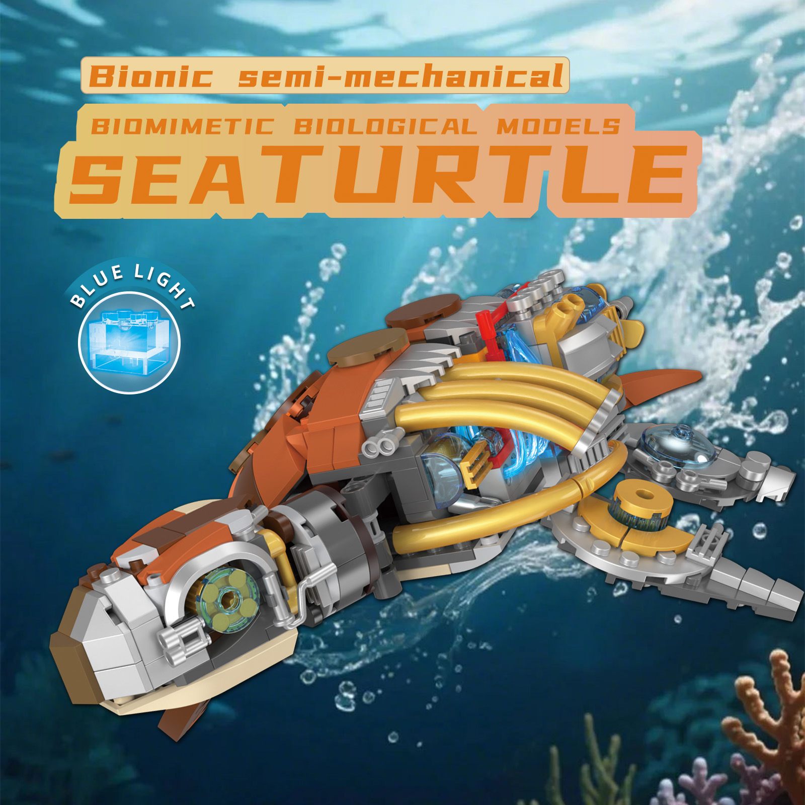 跨境编程半机械积木海龟手办模型兼容乐高小颗粒科教益智拼插玩具