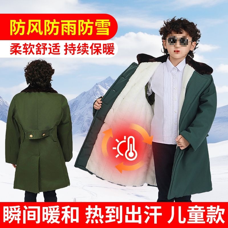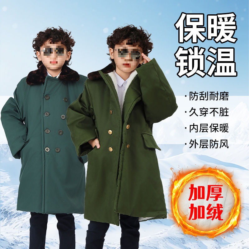 儿童军大衣纯棉服加绒加厚网红款保暖防寒冬季棉袄加长宝宝厚外套