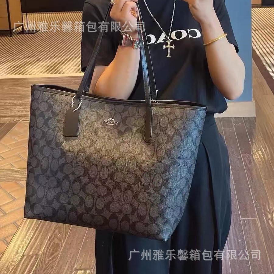 蔻家新款City33托特包高品质真皮老花大容量购物袋手提单肩通勤包