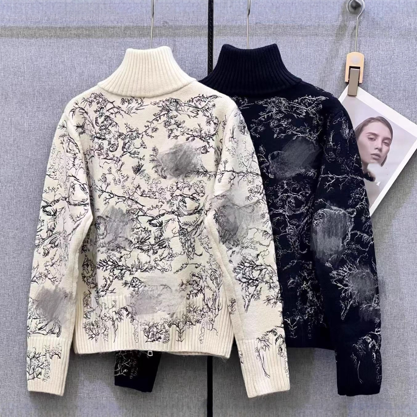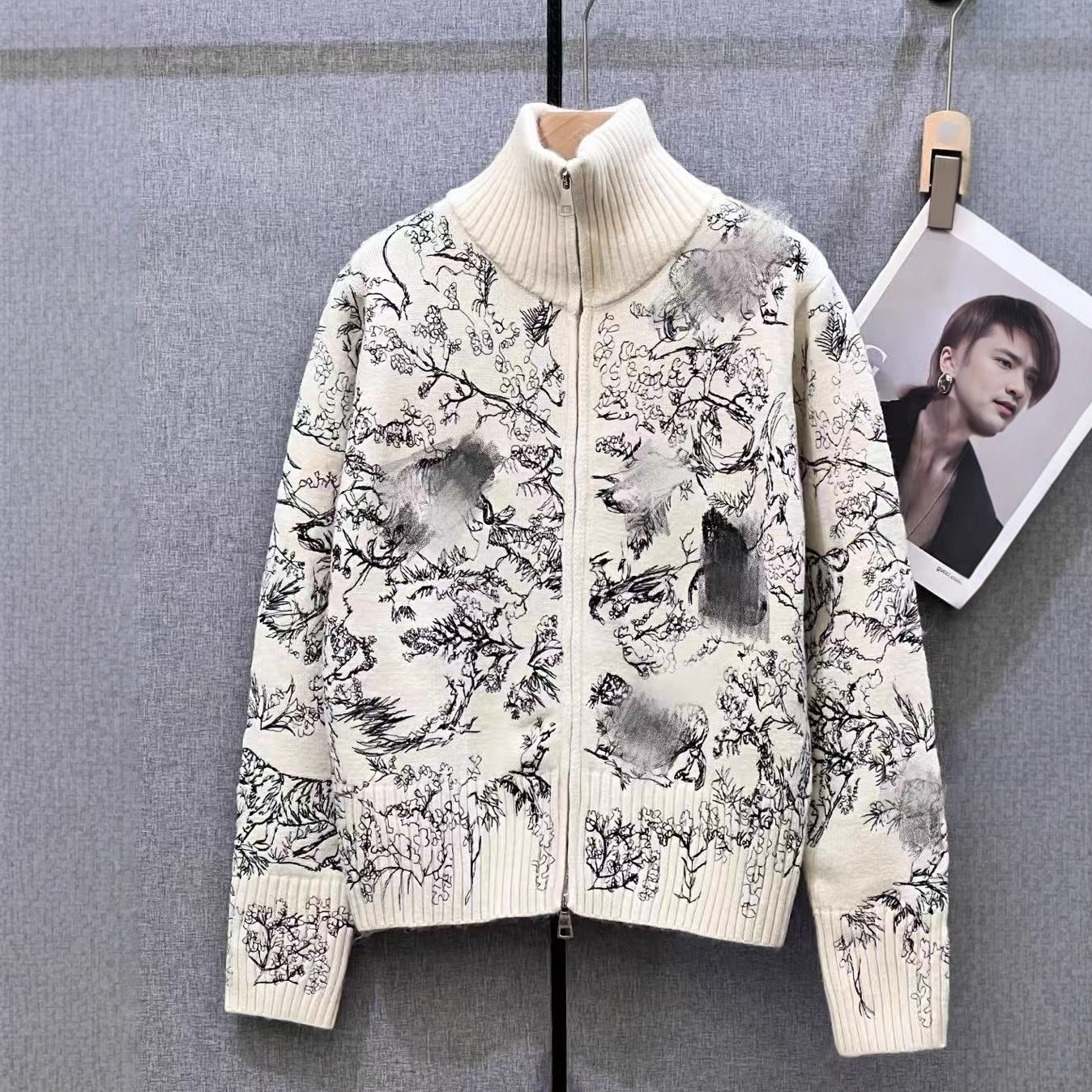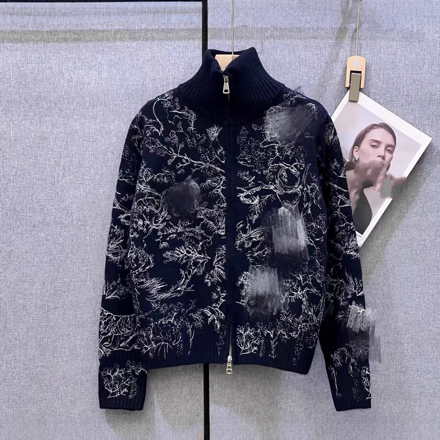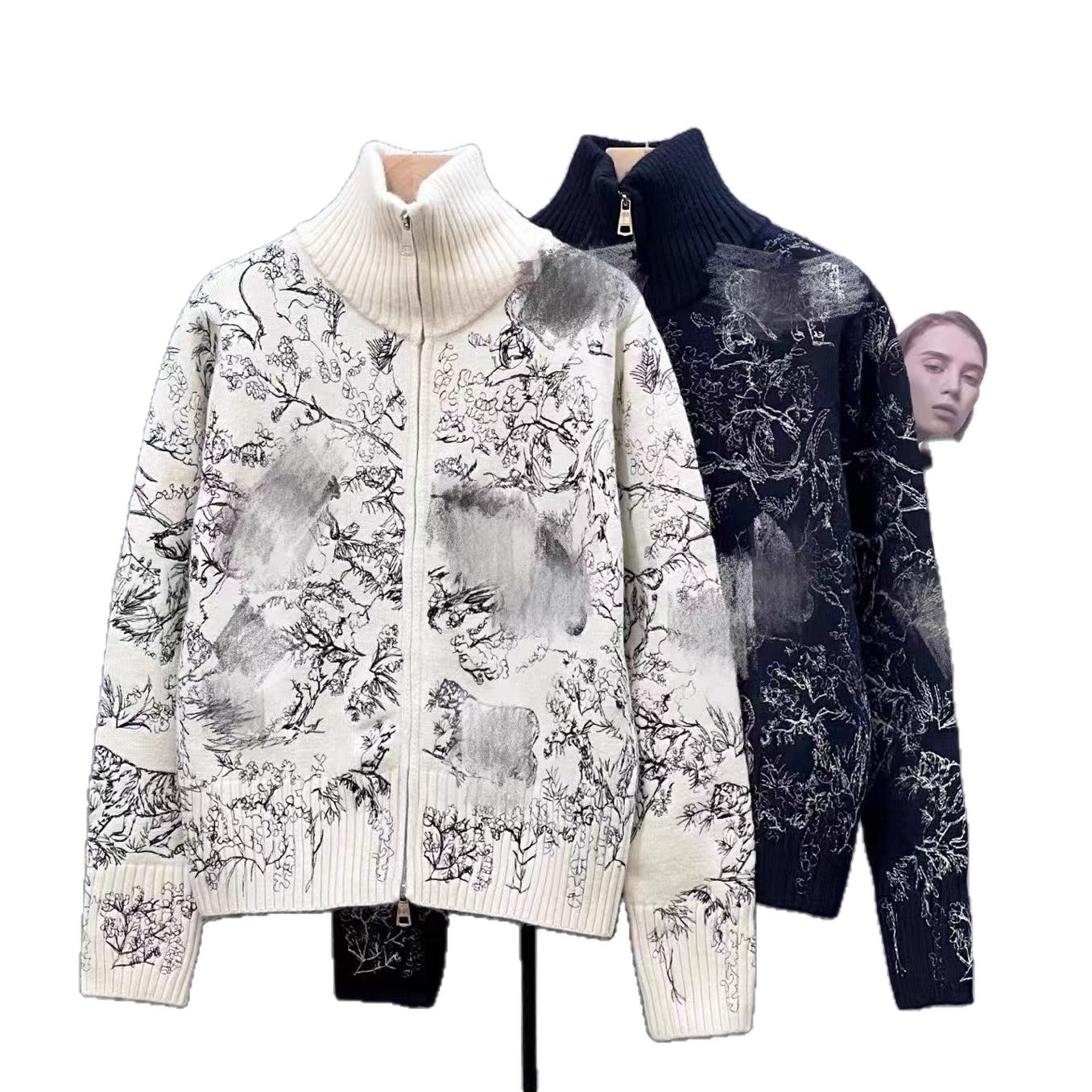 南油高定D家25年新款丛林动物刺绣立领针织拉链开衫外套女
