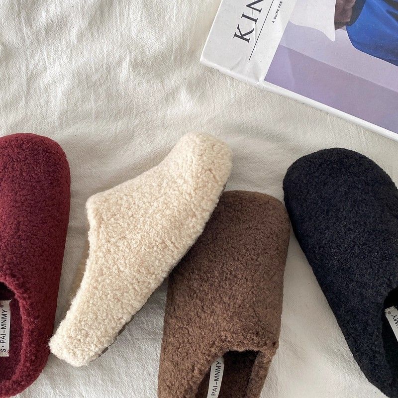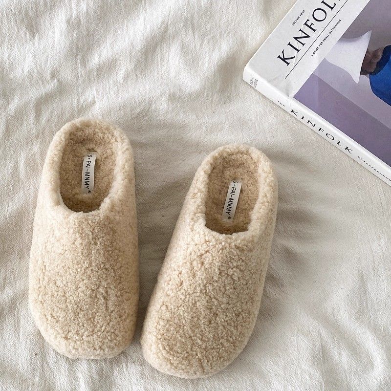 保暖羊羔毛棉秋冬新款厚底包头拖鞋潮毛毛拖鞋女外穿2025杏色