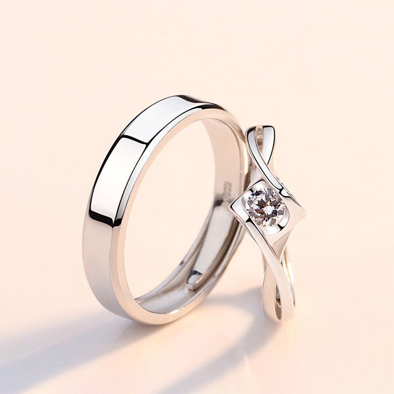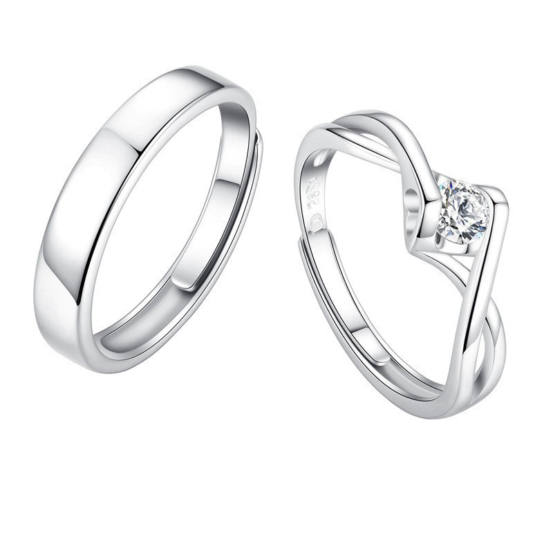 S925银情侣戒指一对女男轻奢简约对戒表白情人节生日礼物送男女友