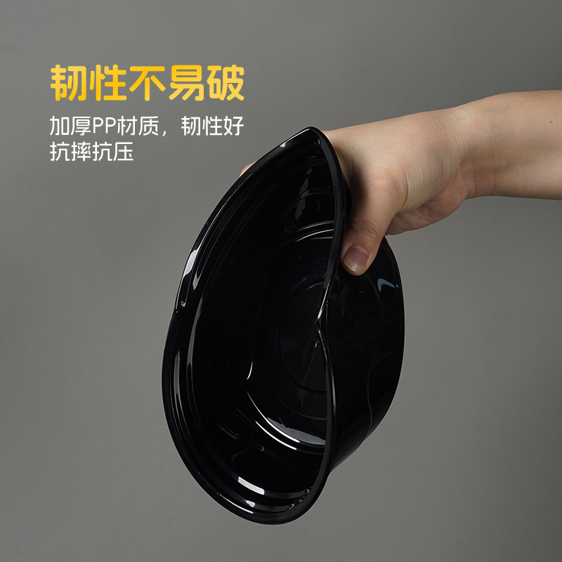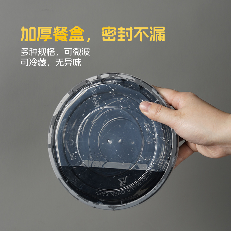 一次性美式圆形打包碗外卖餐饮商用黑色塑料打包盒食品级加厚餐盒