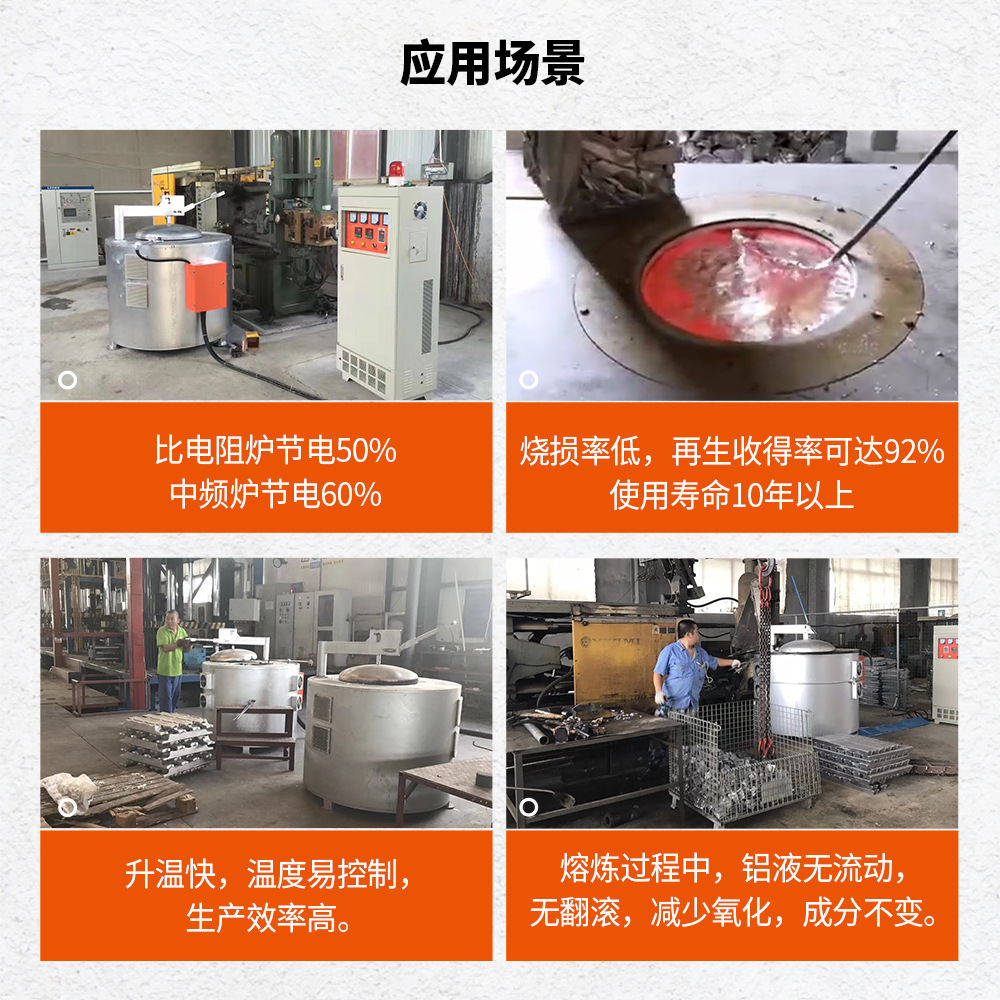 应用场景熔炼各种金属,钢、铁、铝、不锈钢、铜等废旧金属易拉罐等