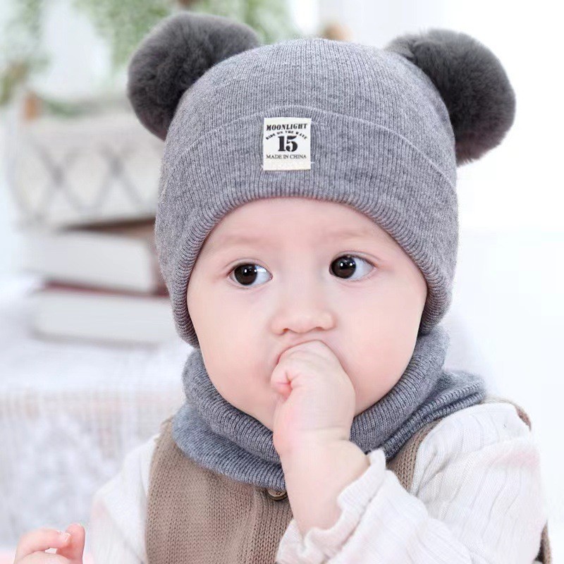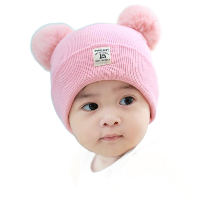 婴儿帽子秋冬保暖毛线帽男女宝宝可爱小熊套头帽