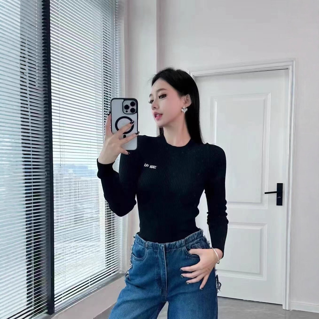 南油高定M家25年秋冬新款 纯色休闲简约百搭圆领修身针织打底衫女