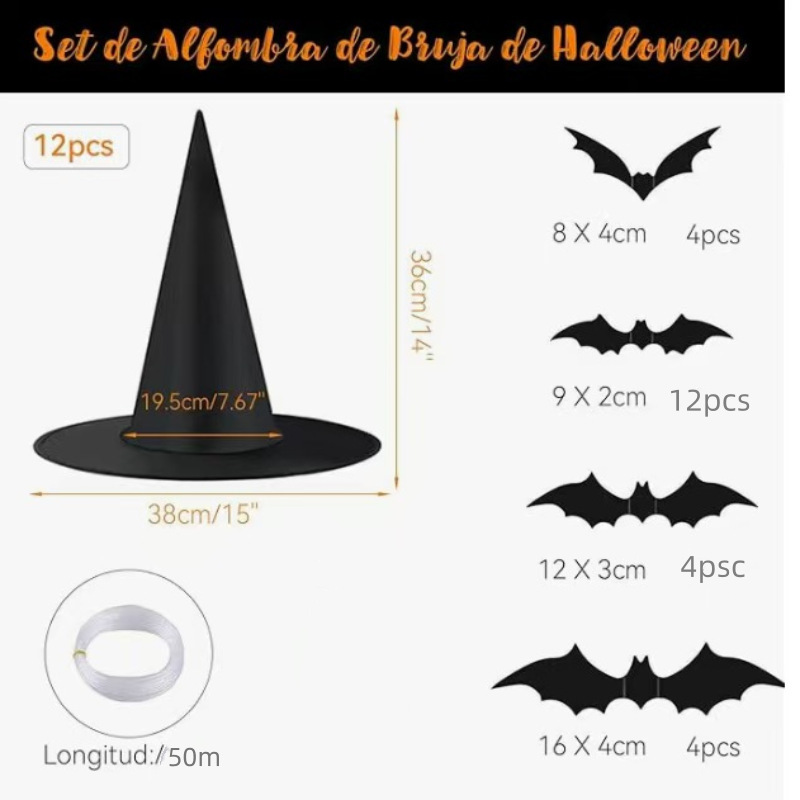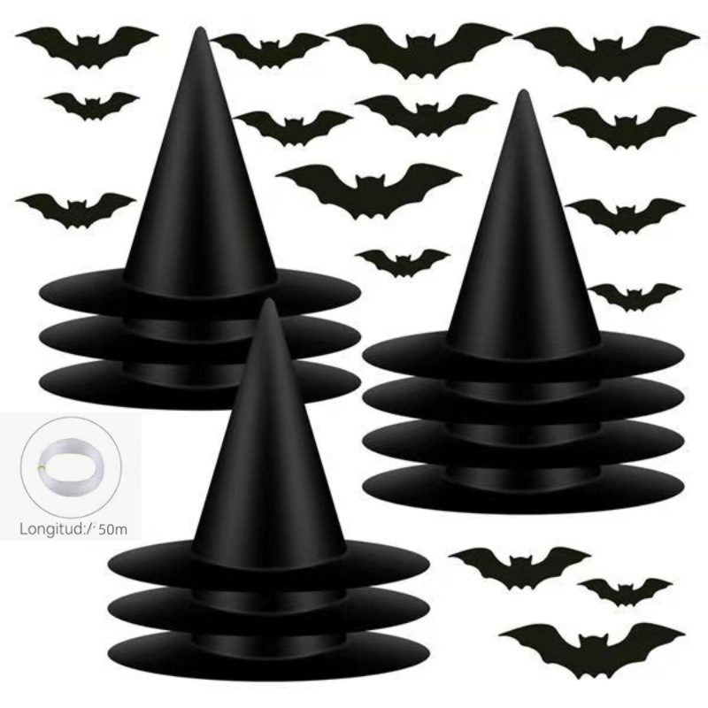 万圣节帽子巫婆派对装饰魔法师女巫帽黑尖巫师帽配鱼线和蝙蝠挂饰