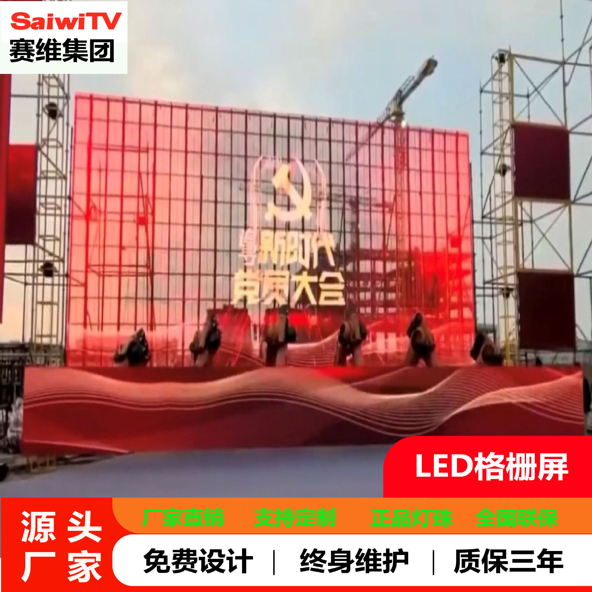 LED户外防水透明屏格栅屏显示屏压铸铝3.91-7.8赛维高清大屏幕