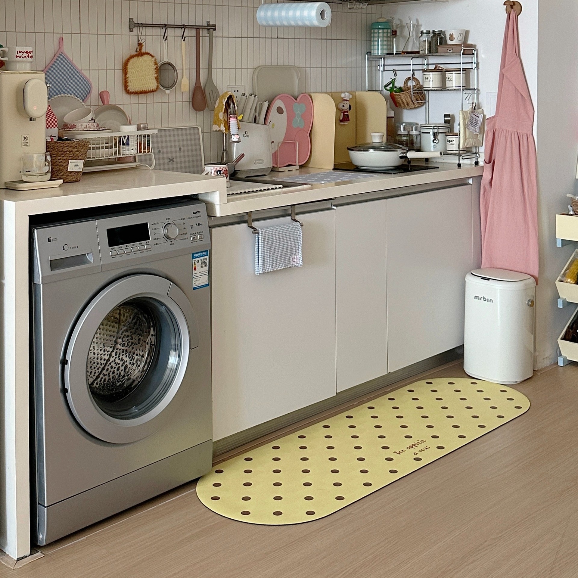 黄色波点厨房用地垫吸水吸油防滑脚垫免洗耐脏转角硅藻泥脚垫子