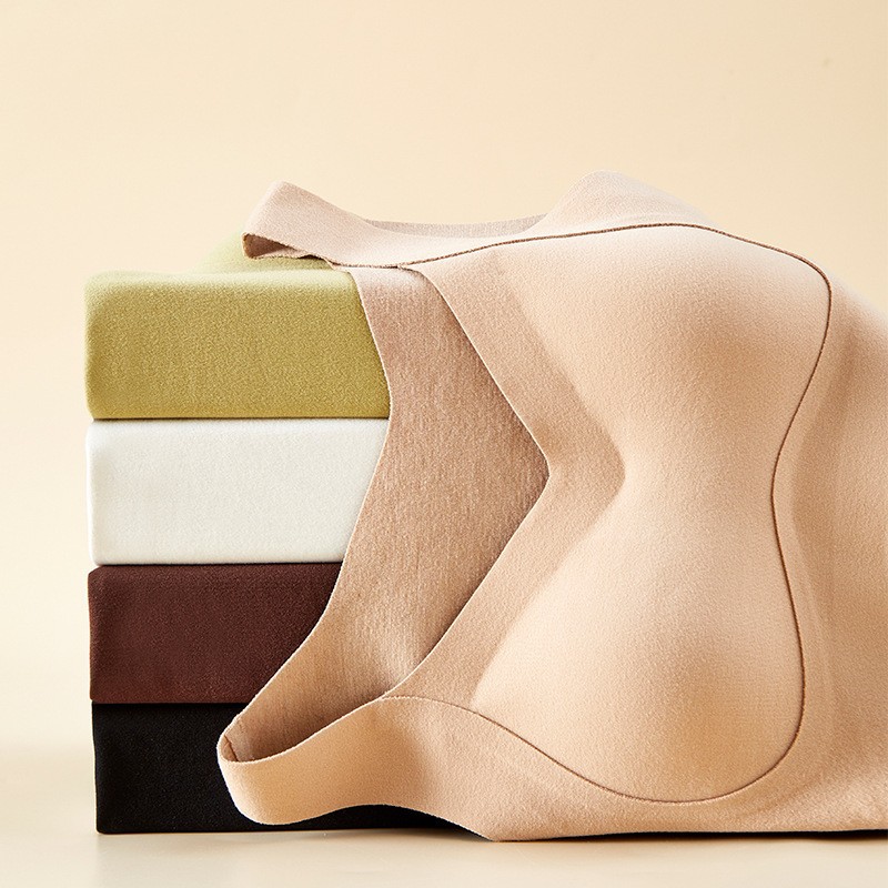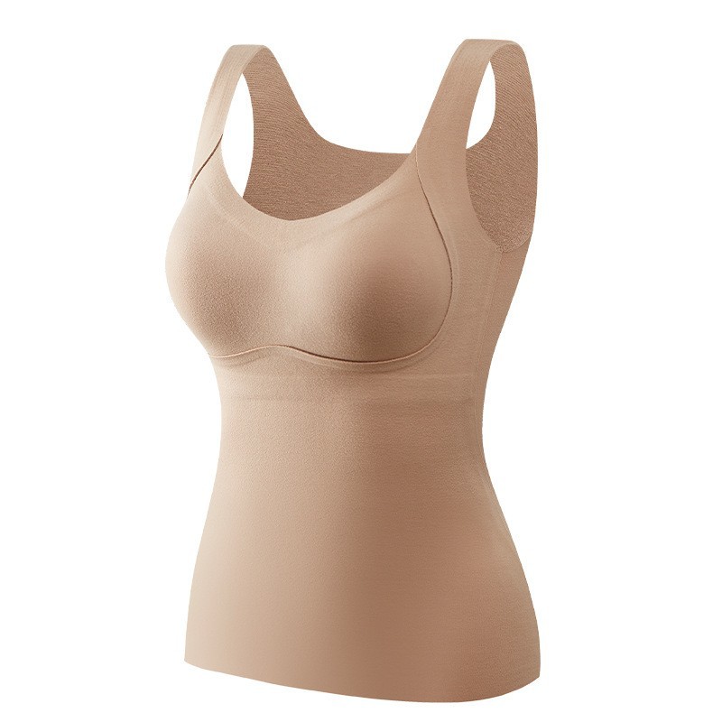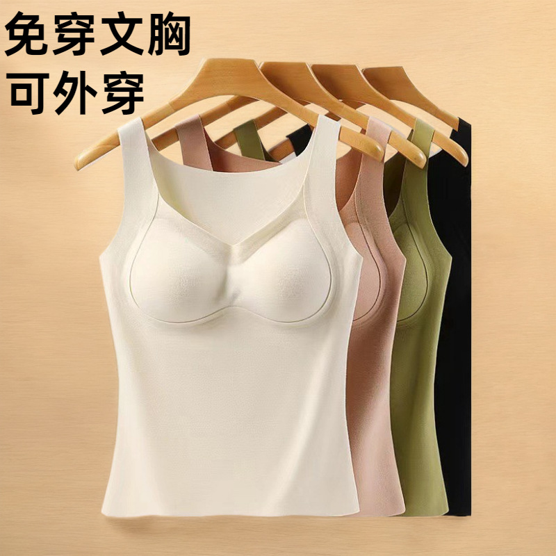 秋冬季羊绒保暖背心女带胸罩一体抗菌打底可外穿磨毛女士内衣批发