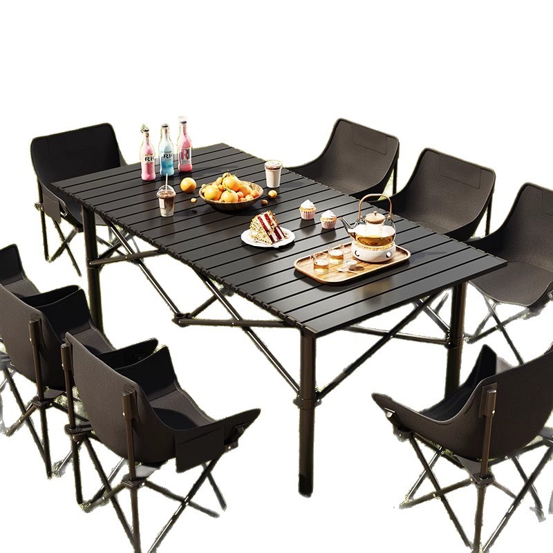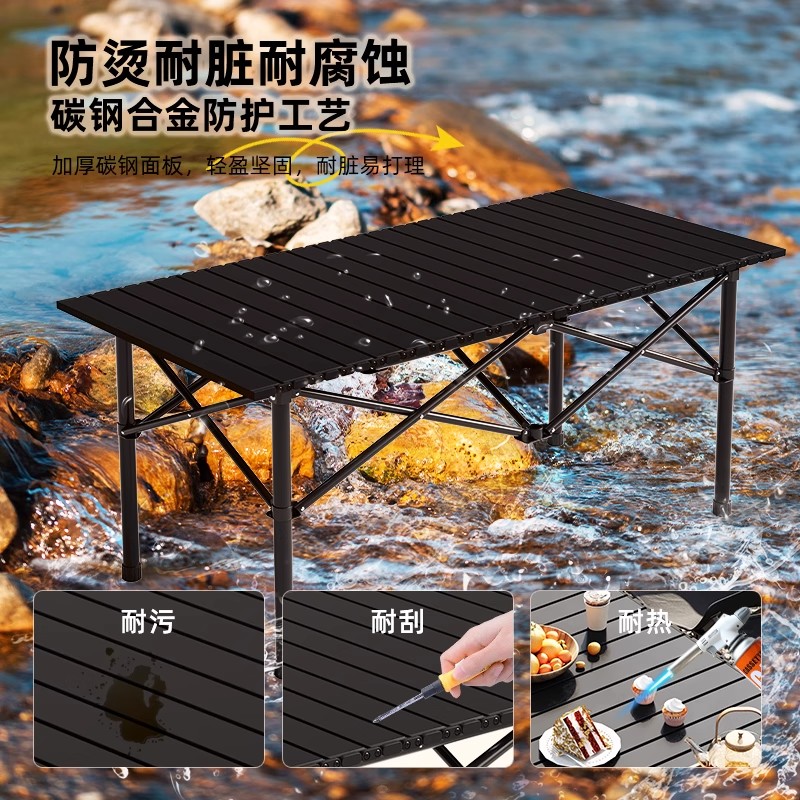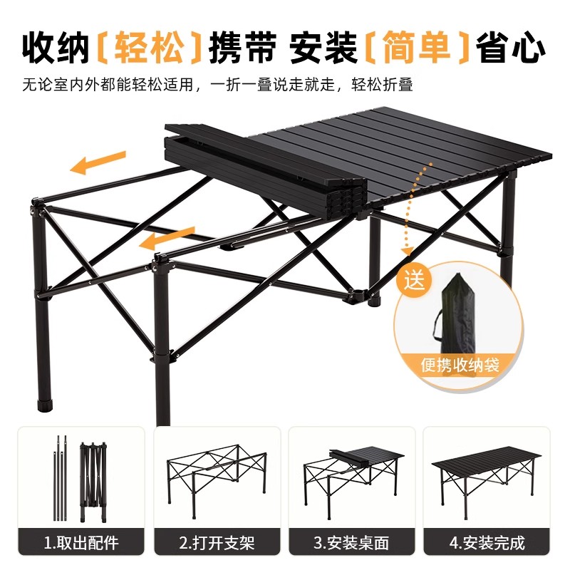 露营桌子便携式蛋卷桌黑色卡其色野炊装备野营烧烤桌子野营折叠桌
