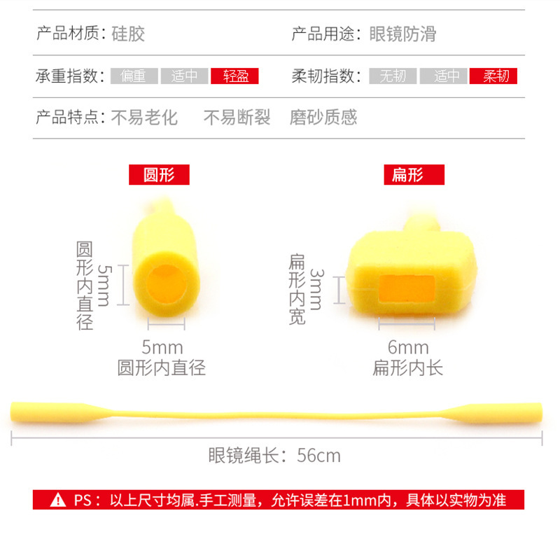 防滑运动眼镜绳加粗可调圆头卡扣儿童成人防掉落