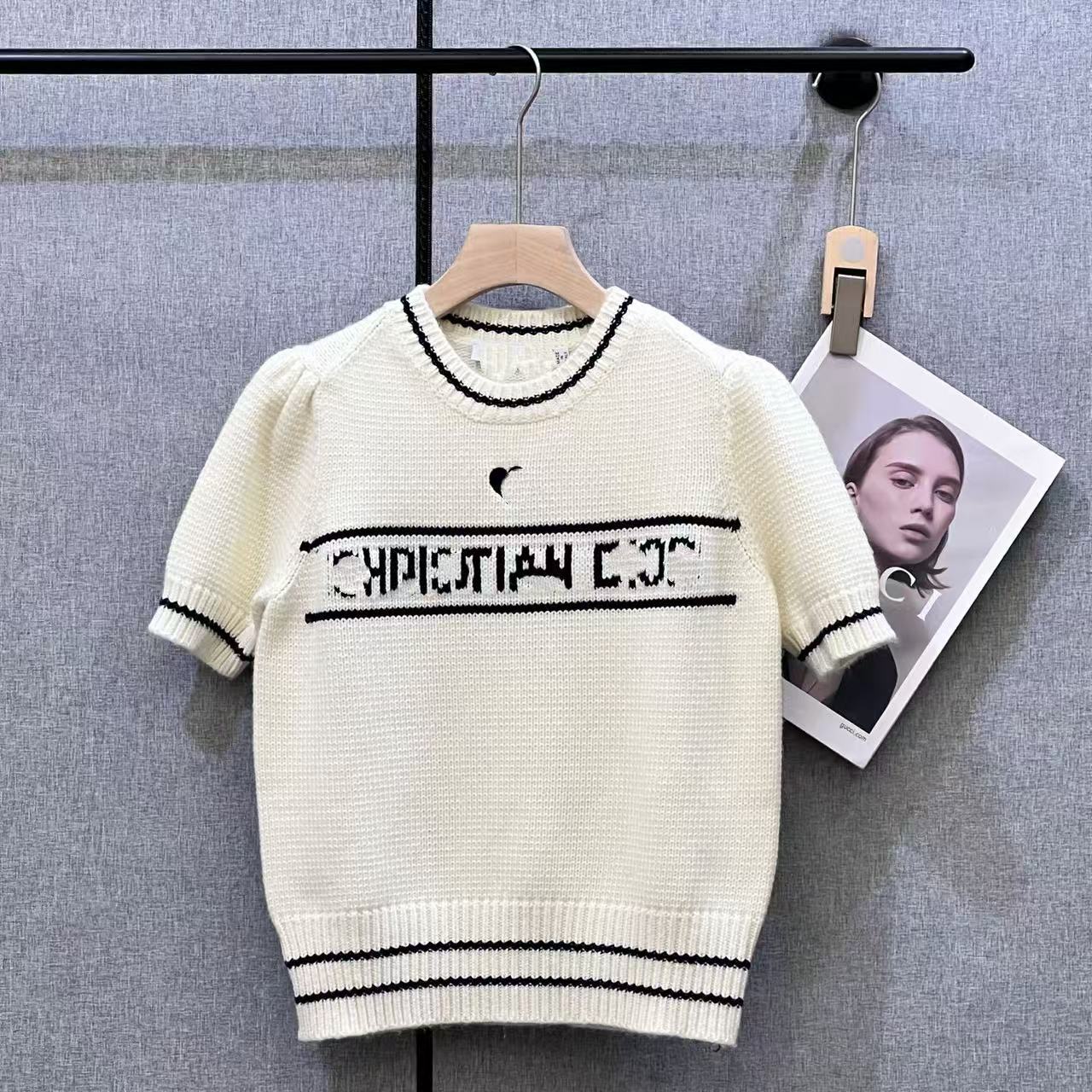南油高端女装D家五角星刺绣圆领短袖2025秋季新款百搭上衣女