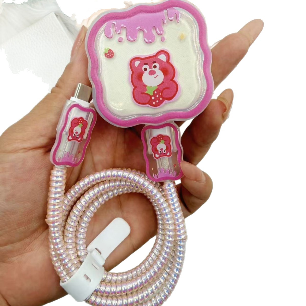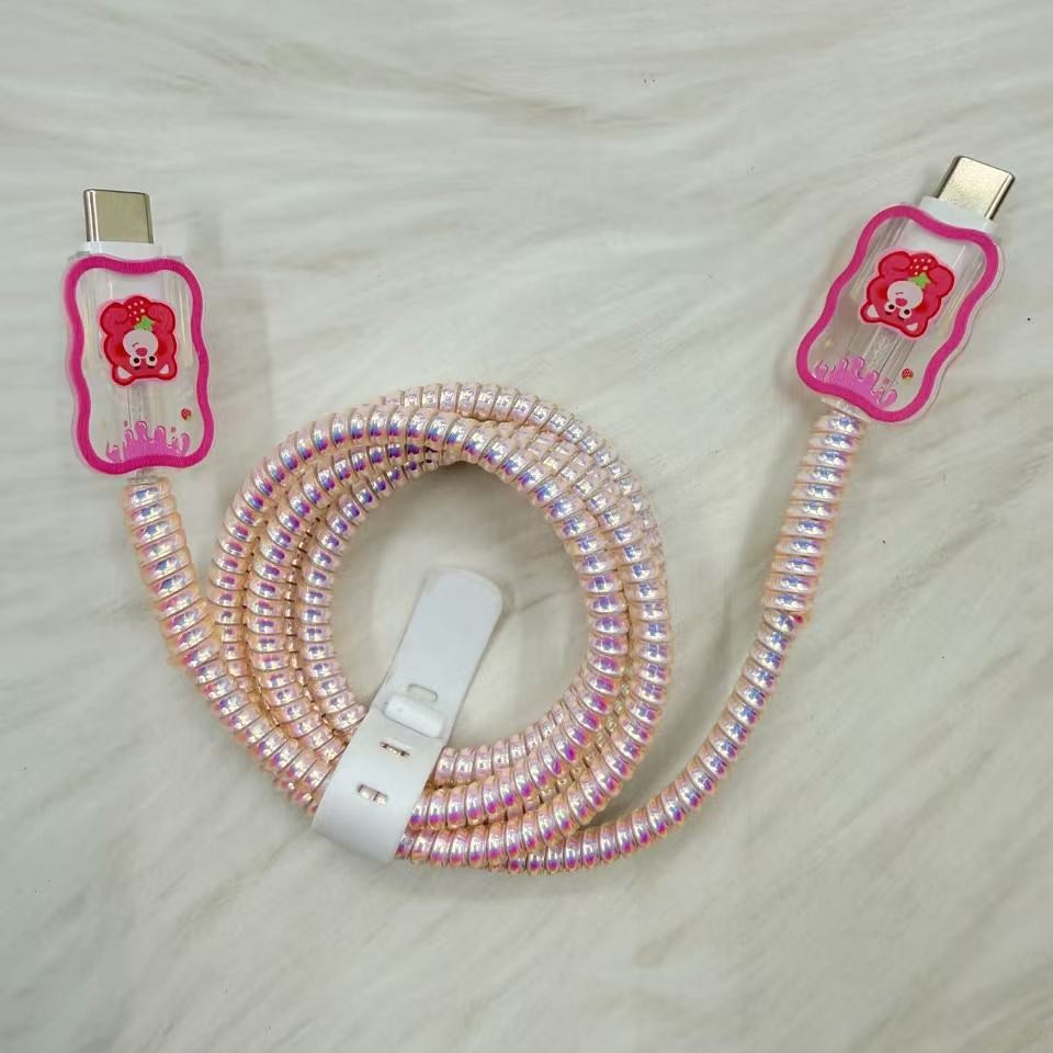 数据线保护套适用苹果40W原装数据线保护绳充电器草莓熊款保护壳