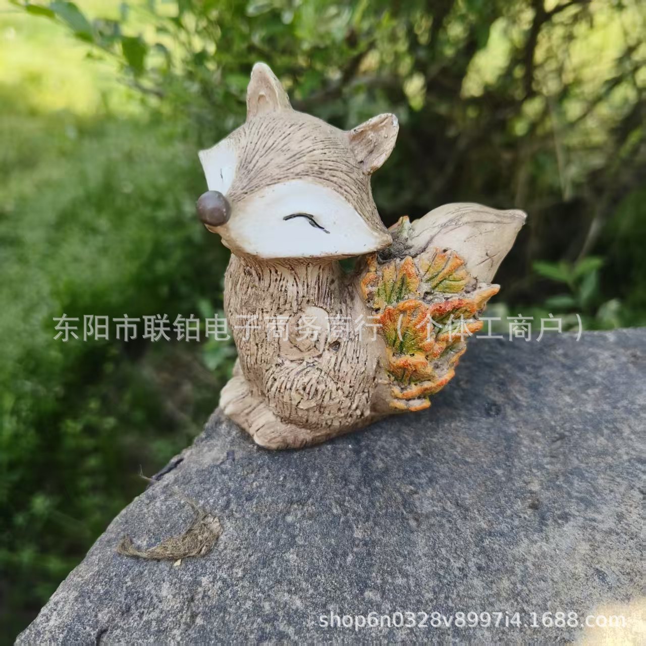 跨境新款仿真狐狸刺猬花园装饰摆件庭院猫头鹰松鼠鸟装饰树脂摆件
