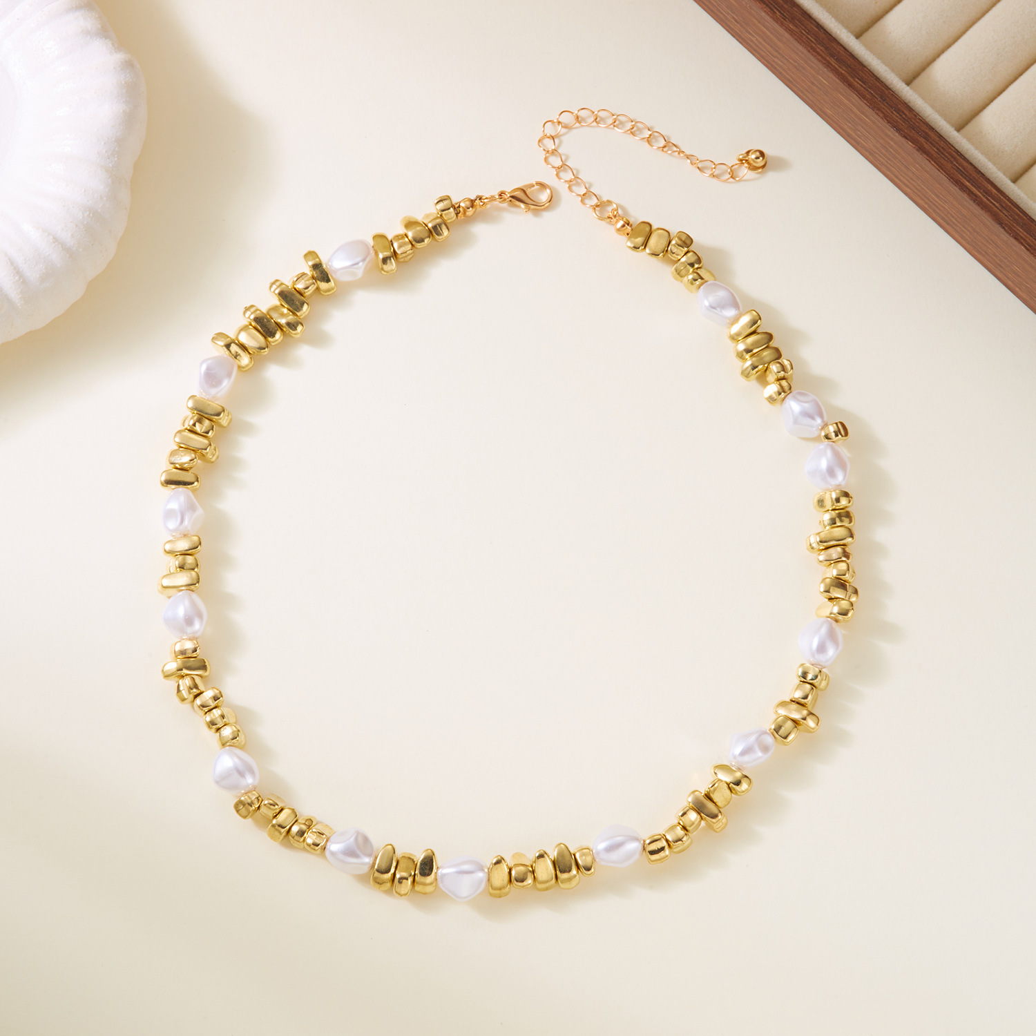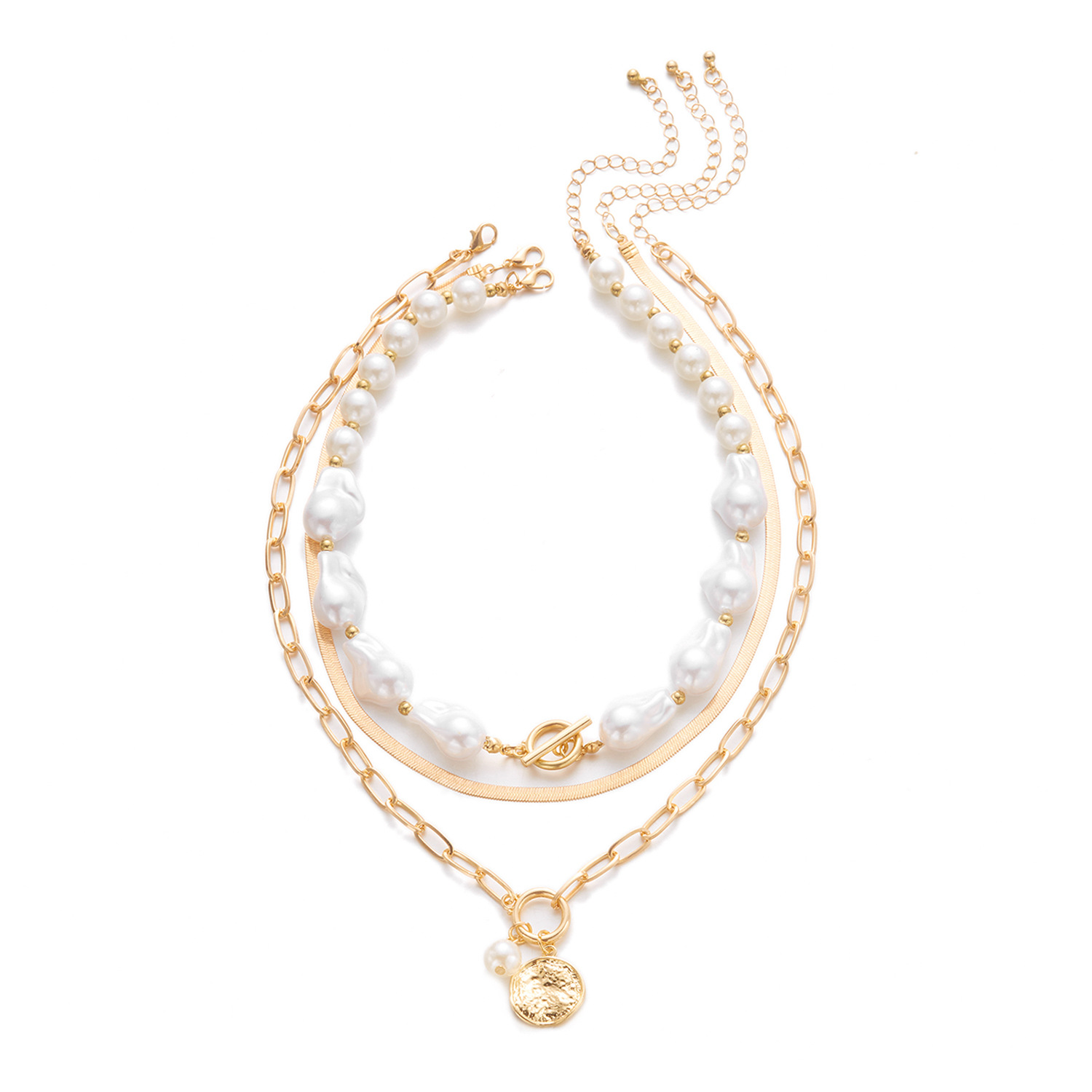 欧美跨境饰品巴洛克几何型仿珍珠串珠锁骨链复古时尚百搭项链套装