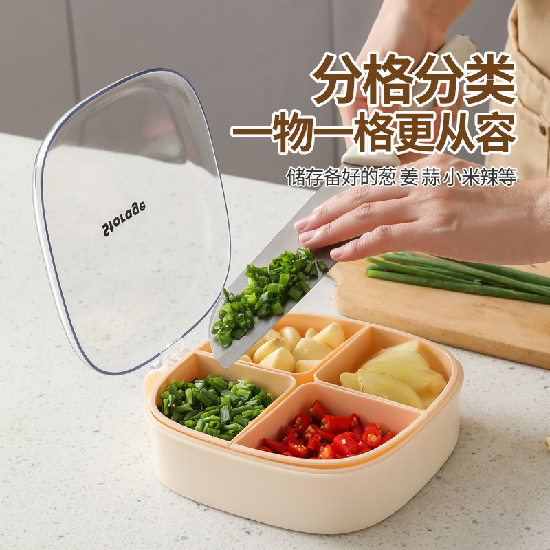 【专利正品】厨房葱姜蒜保鲜盒冰箱分格不串味密封沥水储物盒
