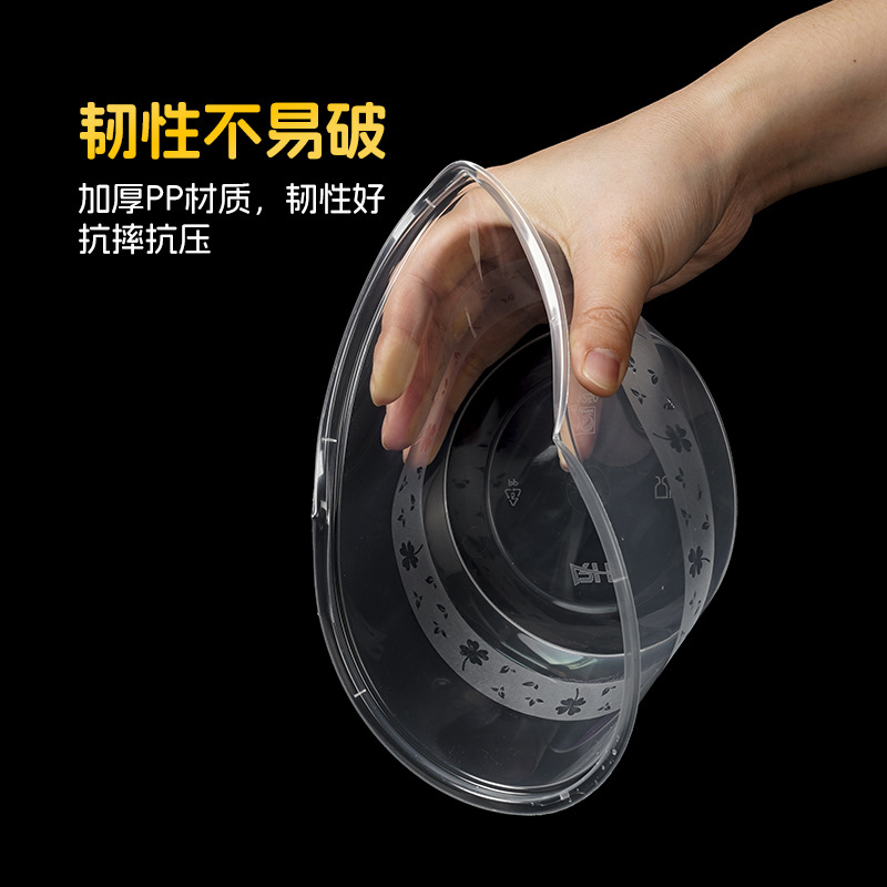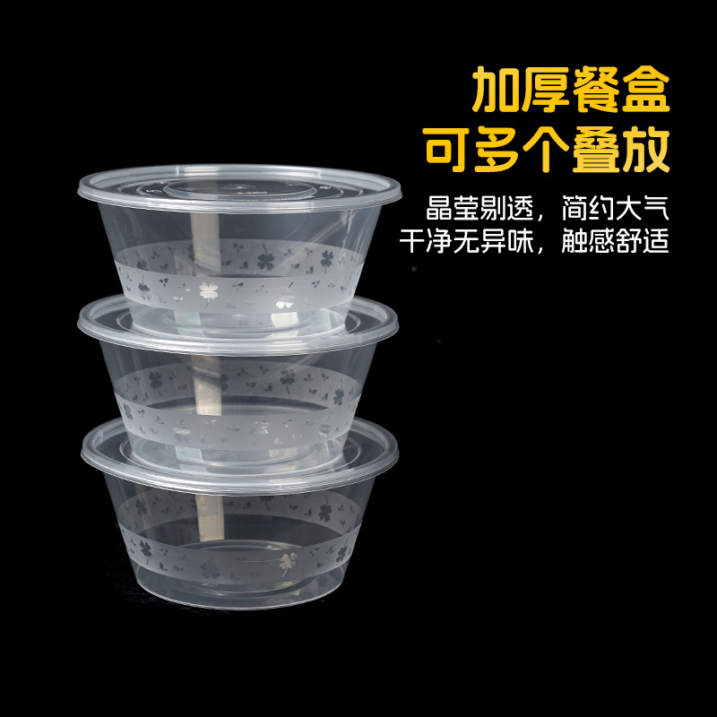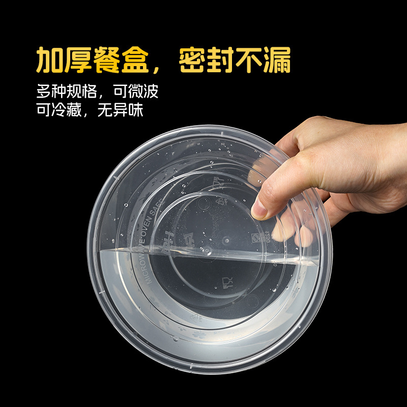 一次性圆形餐盒外卖打包饭盒食品级PP塑料加厚透明圆碗带盖批发