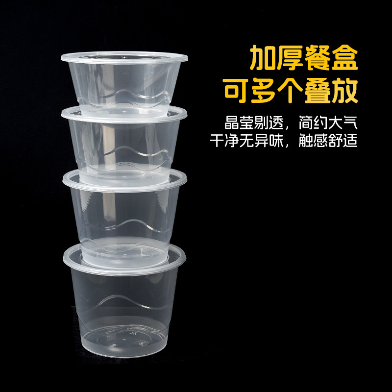 一次性圆形餐盒外卖打包盒水果保鲜饭盒加厚透明食品级pp带盖汤碗