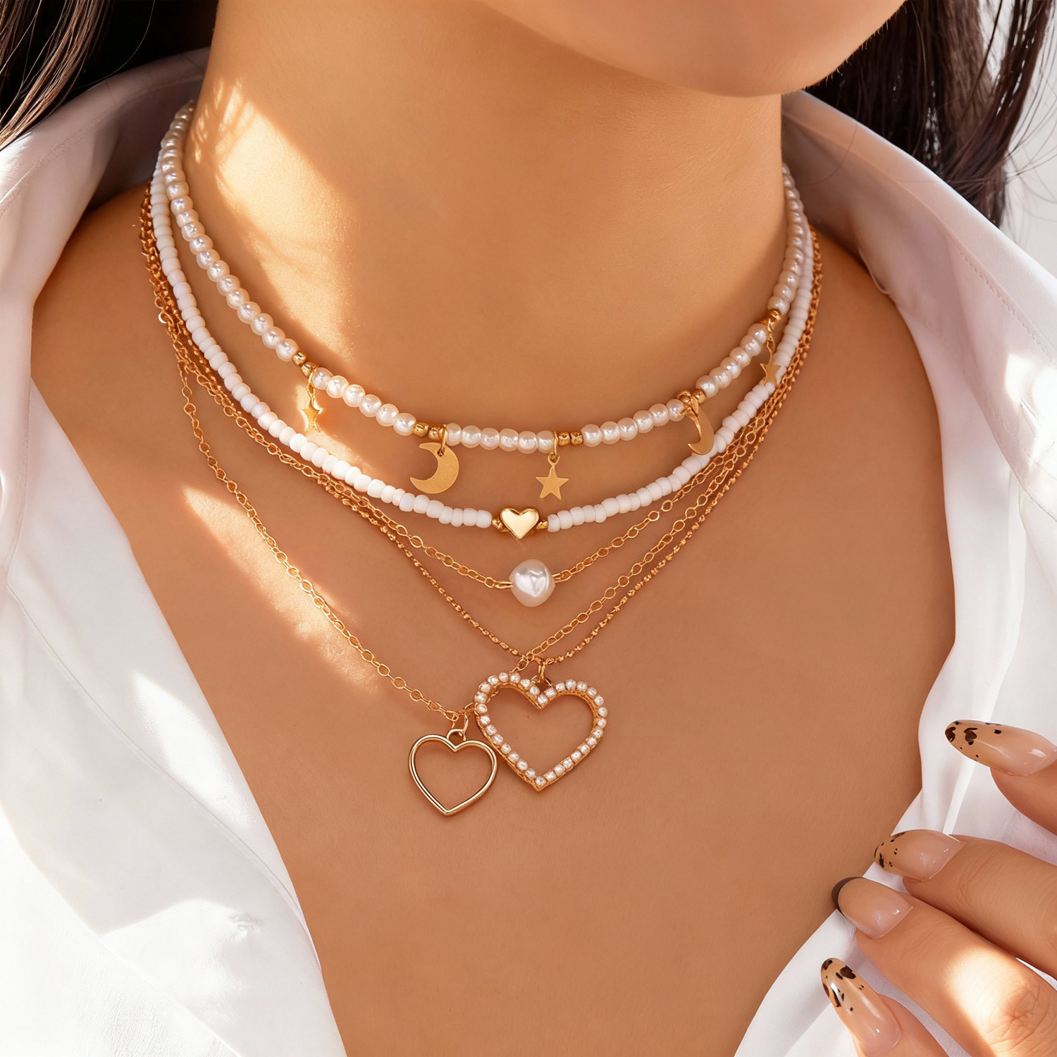 | 颜色 | #4-金银流苏项链 | 颜色 | #5-日月仿珍珠项链 |