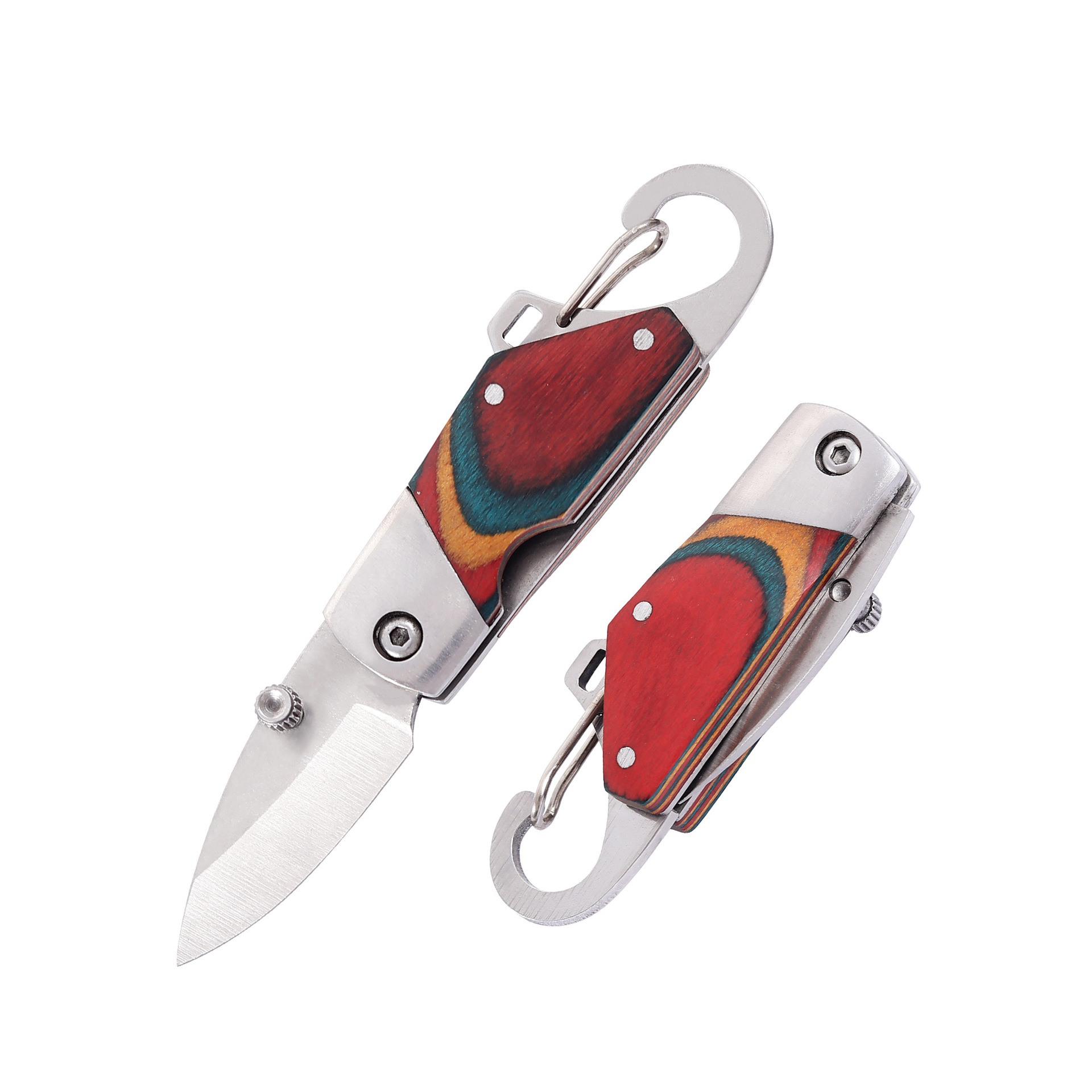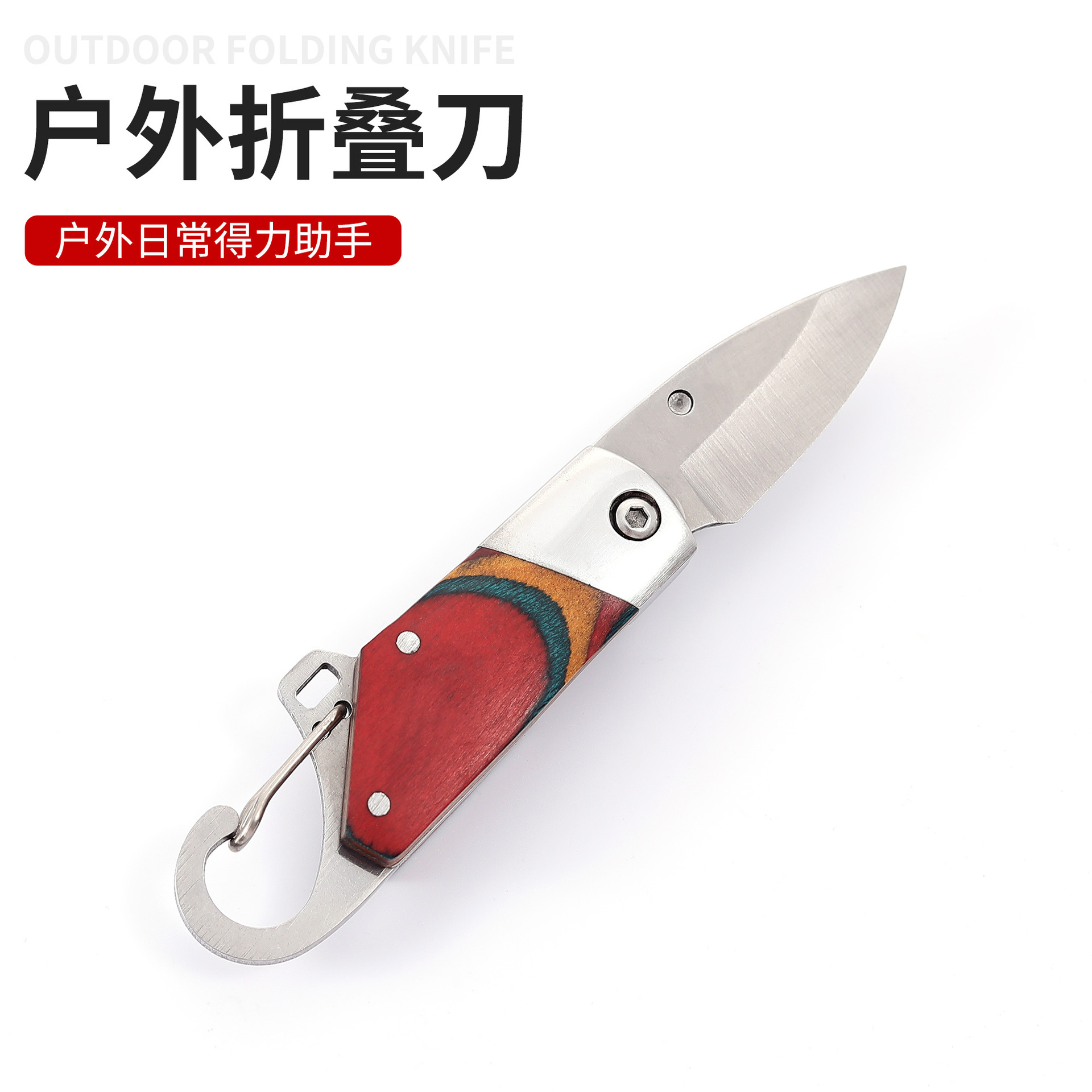 户外迷你折叠刀多功能小刀水果刀木柄野营刀具折叠水果削皮刀