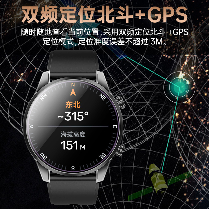 游泳防水户外G1000双频定位北斗GPS蓝牙通话健康气压SOS运动手表