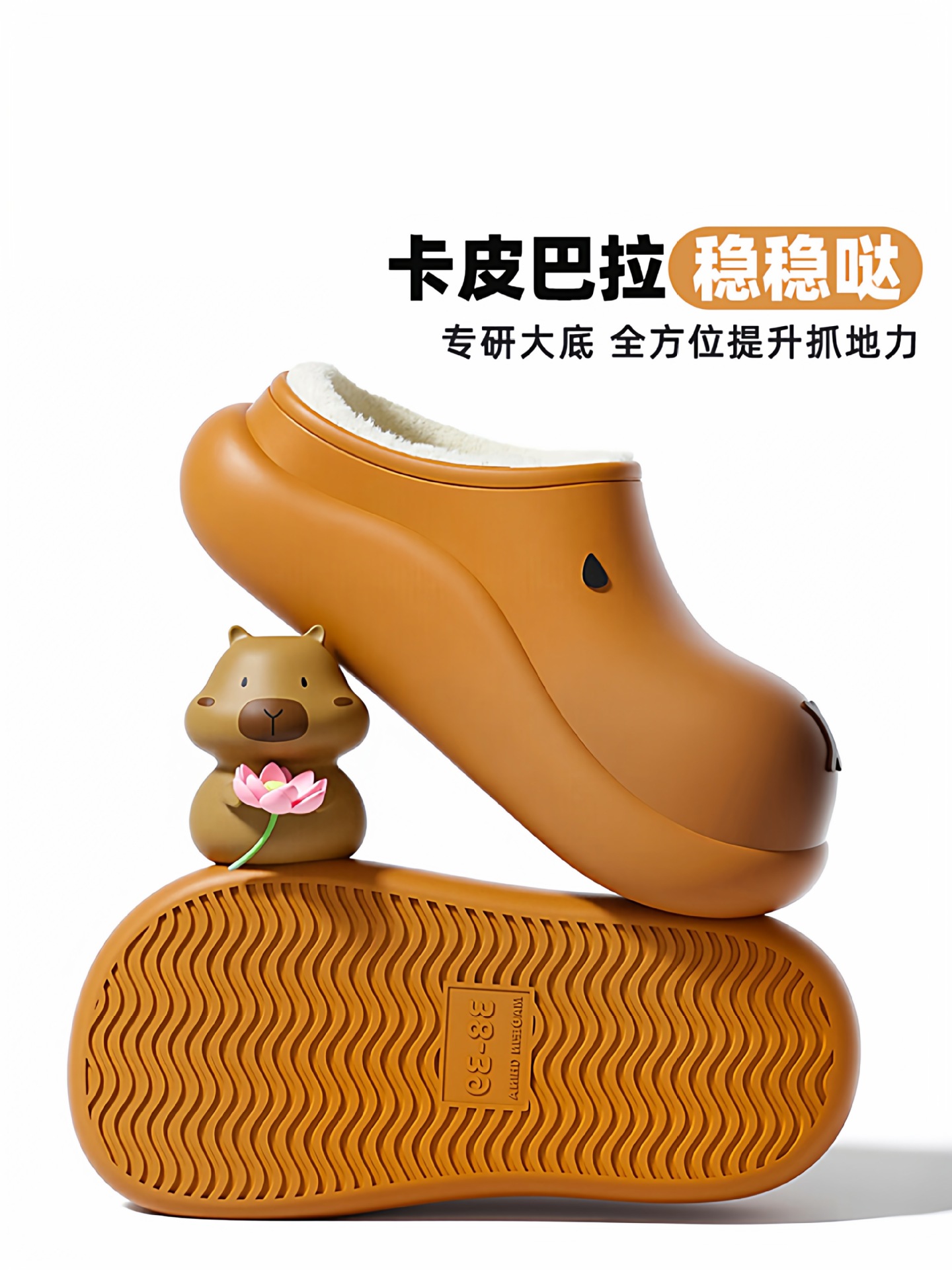 女款棉拖鞋外穿可爱卡皮巴拉水豚包头棉鞋秋冬学生卧室保暖毛毛拖