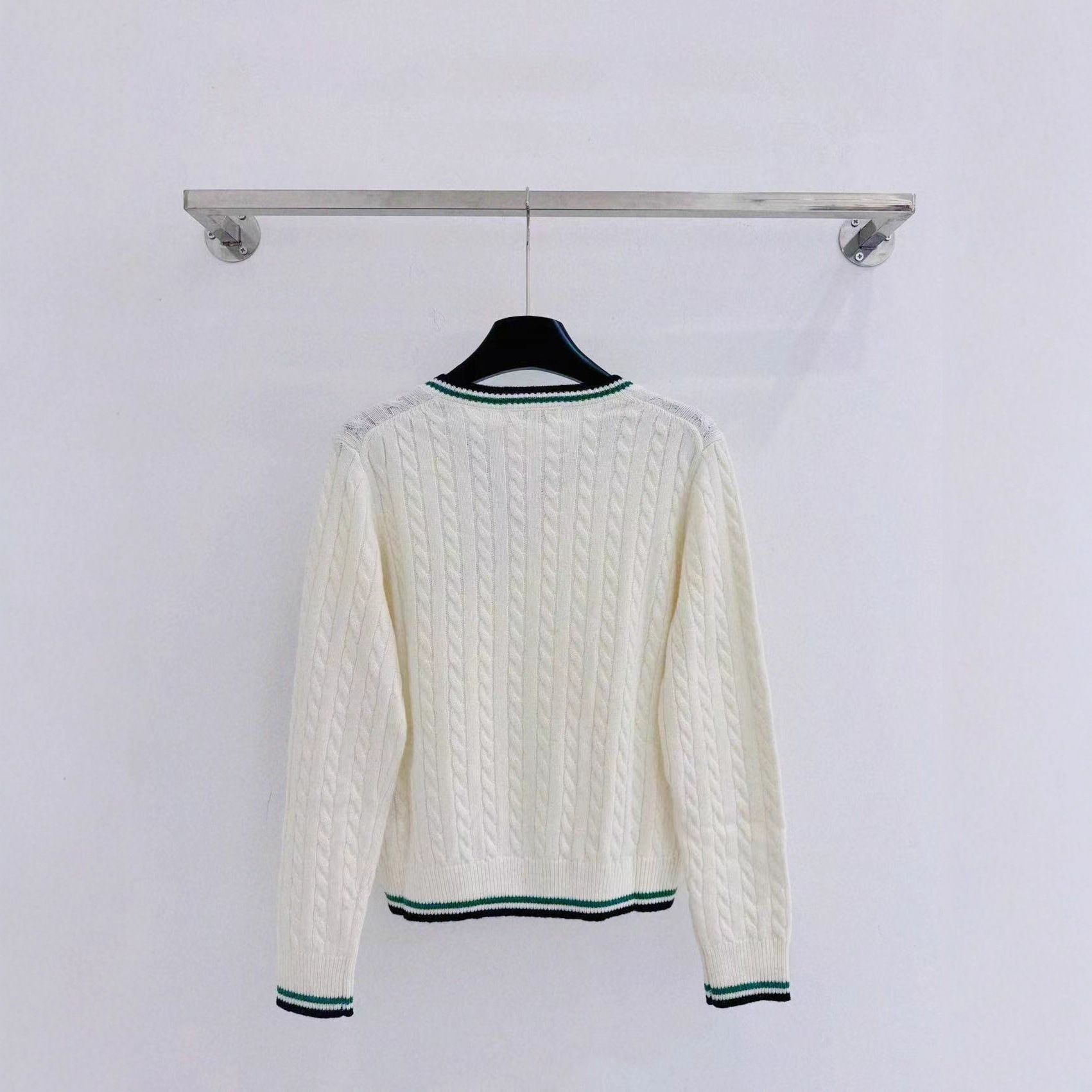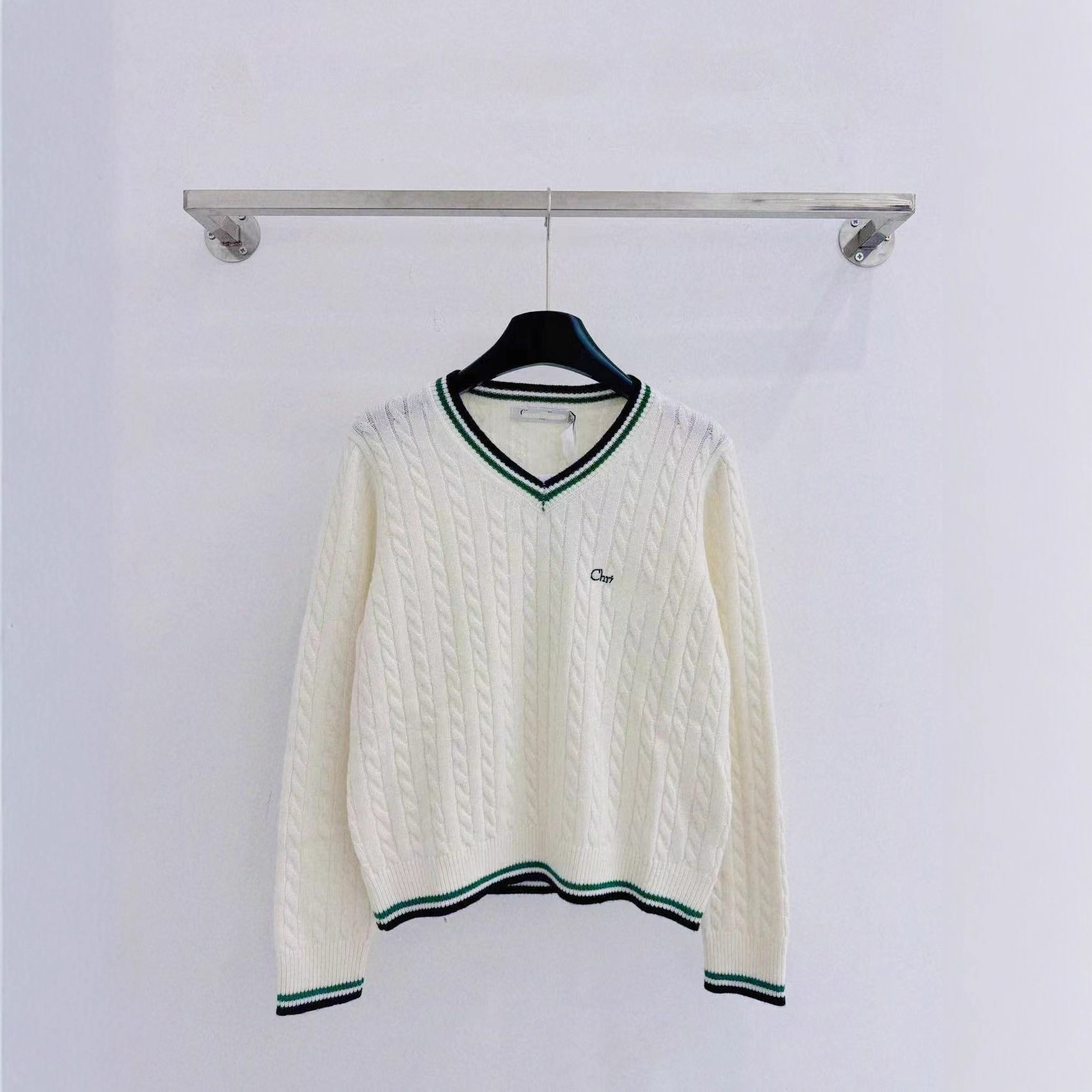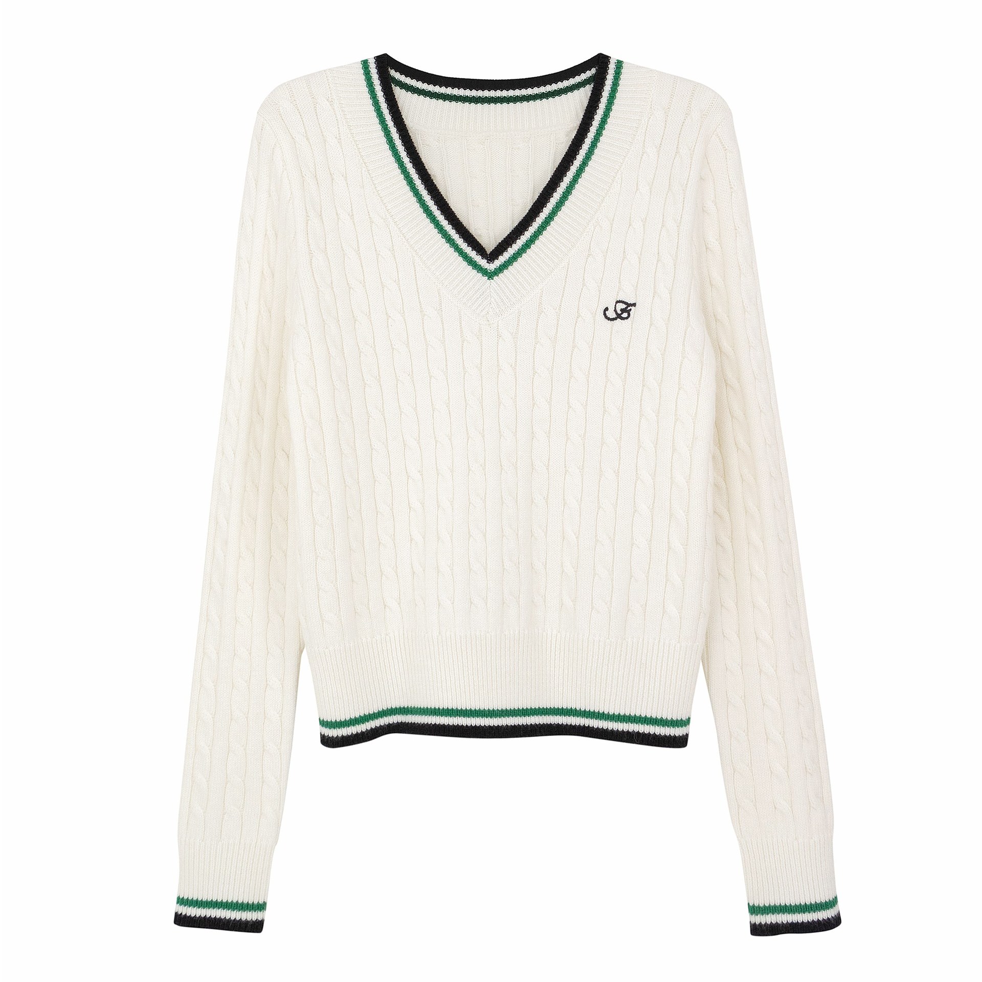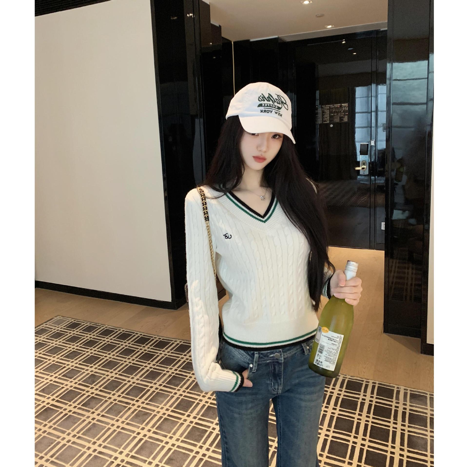 南油D家2025秋季新款 V领撞色条纹字母款麻花休闲针织衫上衣女