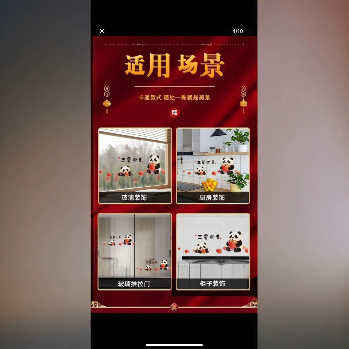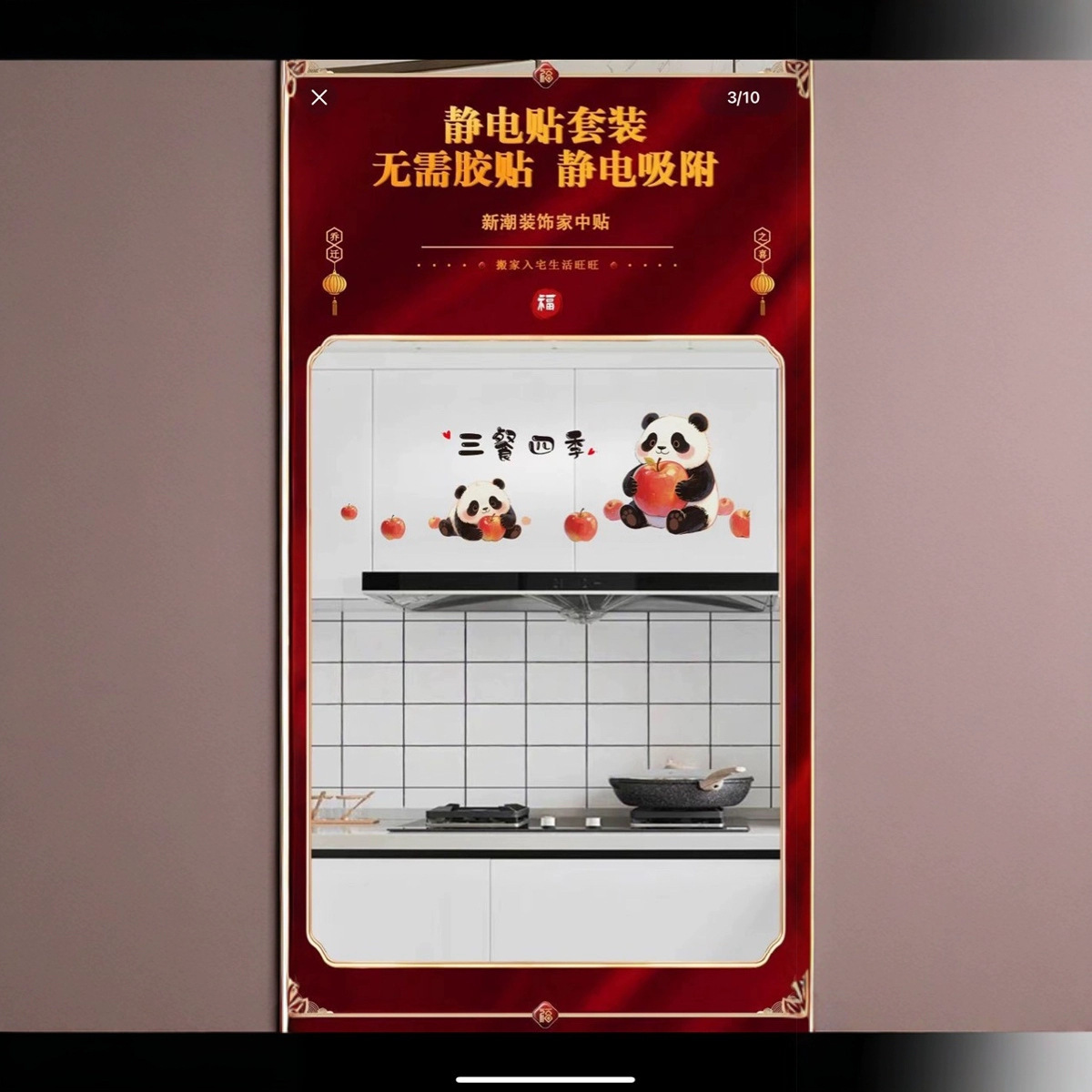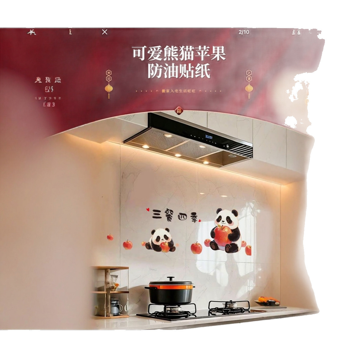 熊猫苹果防油贴纸厨房灶台油烟机墙面新房布置装饰品环保耐高温