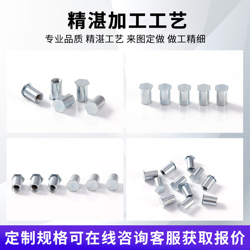 镀锌盲孔压铆螺柱M3M4M5镀锌压铆件六角螺柱BSO压铆螺柱压板螺母