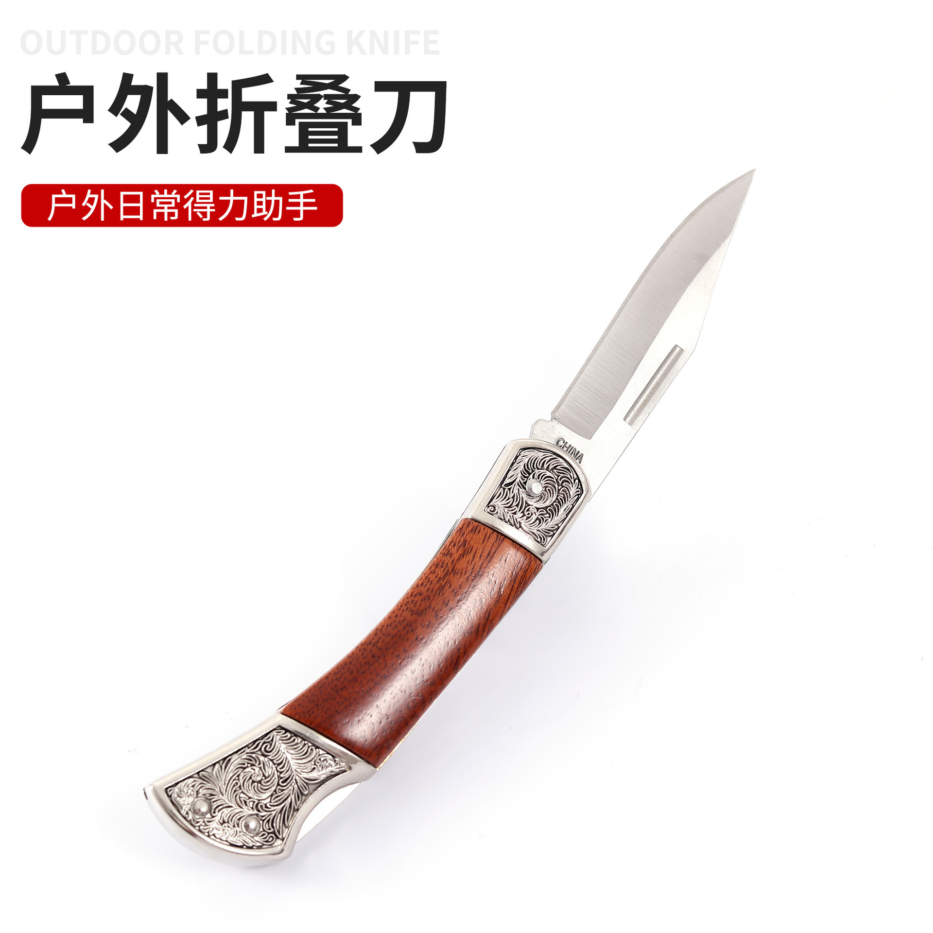 户外折叠刀木手柄多功能不锈钢户外小折刀野营户外折叠水果刀礼品