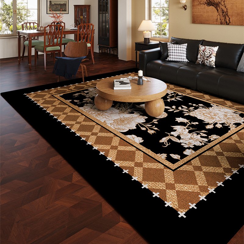 美式复古客厅地毯耐脏耐磨卧室床边毯比利时圈绒沙发茶几垫可定制
